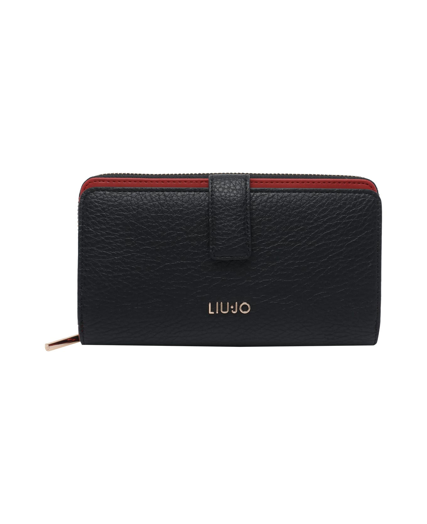 Liu Jo black logo wallet, clip closure, 12 slots, 6 slots, coin holder, frontal logo Composition: 100% Polyester