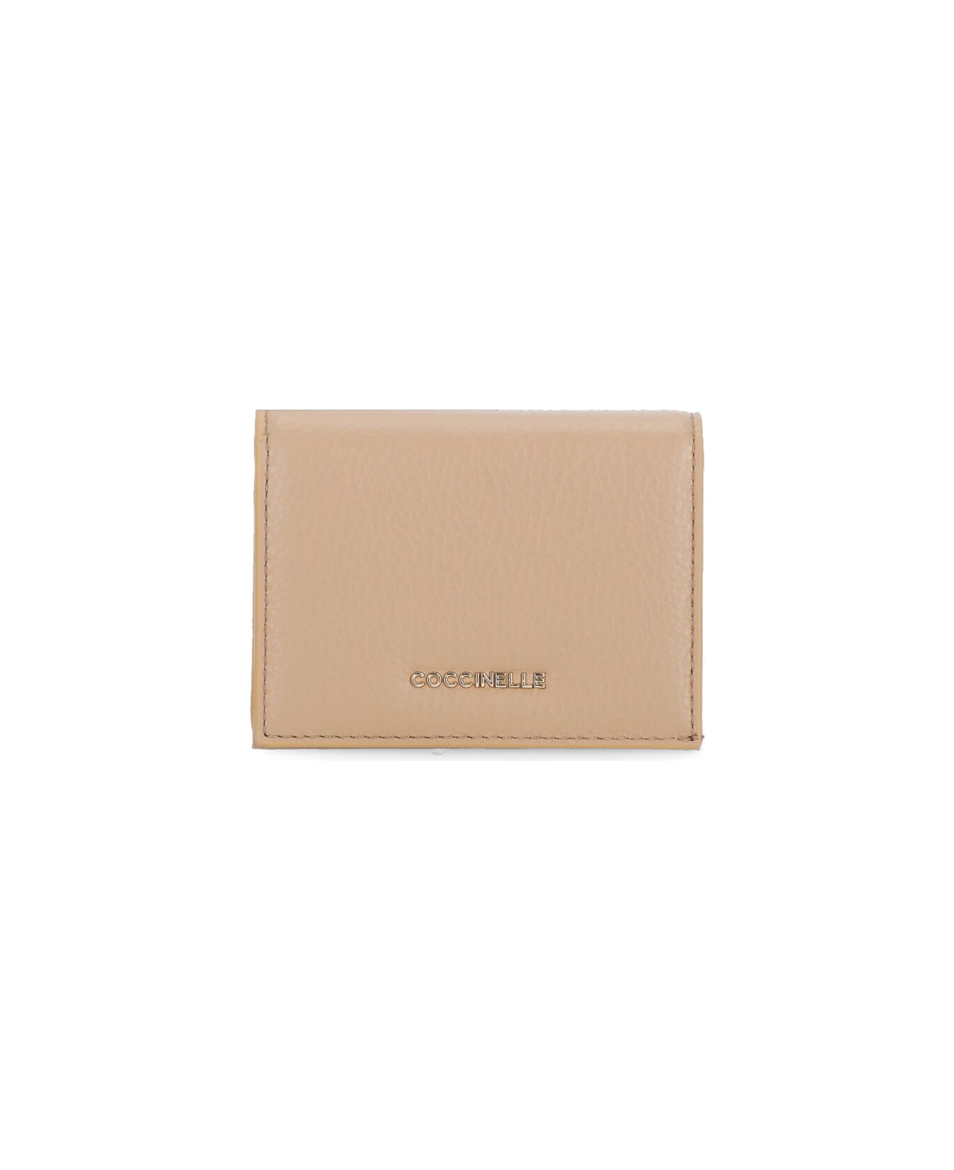 - Beige Coccinelle pebbled leather wallet for woman - Front metallic logo - One main button compartment - Six card holder pockets - One bills holder pocket - One interior zip pocket