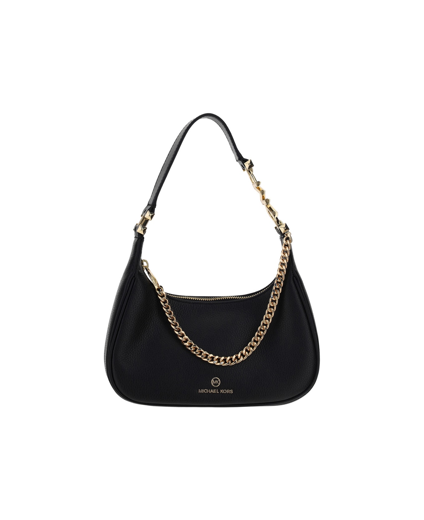 Piper bag by michael kors, hammered design, top shoulder strap with chain detail and double all-gold plated chain strap, iconic brand monogram applied in contrasting embossing on front, top zipper closure, iconic brand monogram applied at base of shoulder strap, single interior compartment, interior welt pocket.