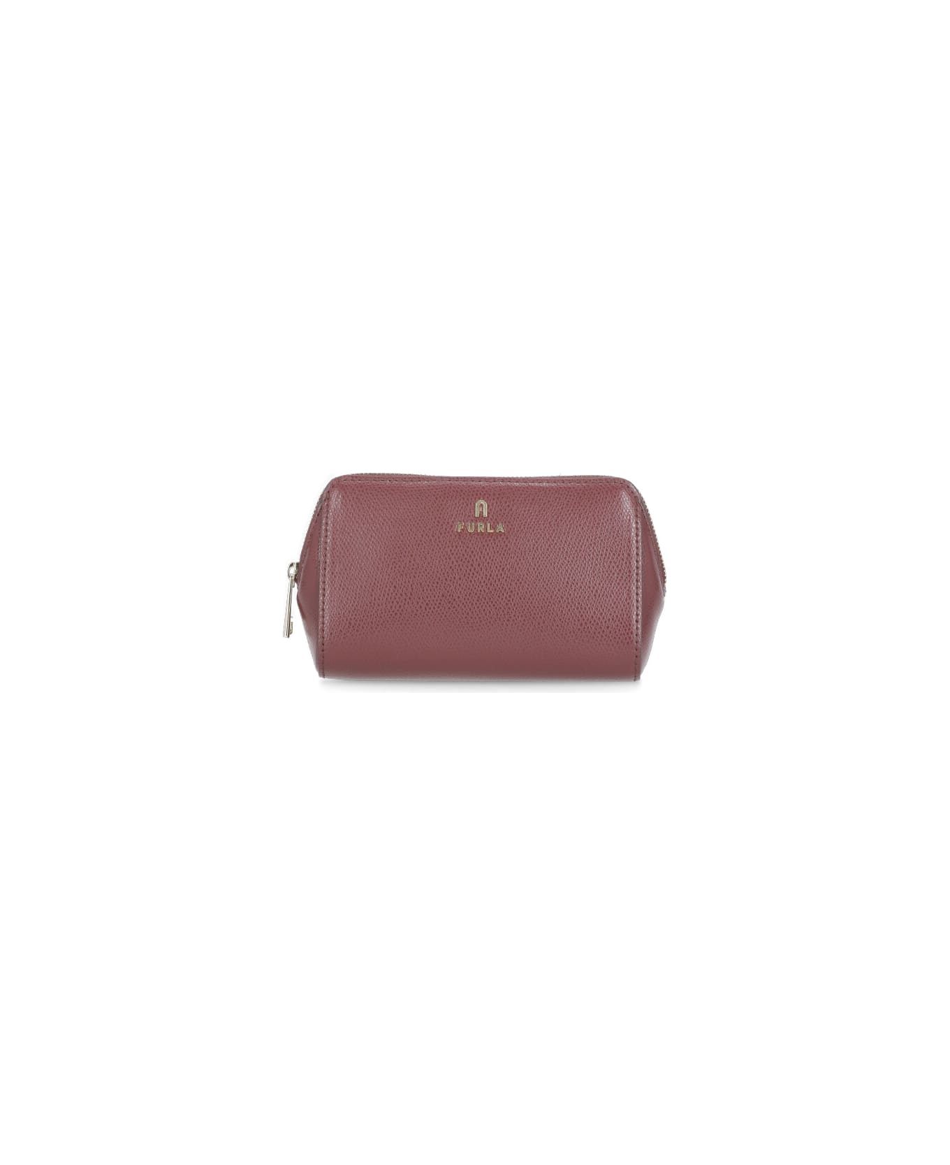 - Bordeuax Furla leather pochette for woman - Welt interior pocket - Front metal logo - Zip fastening