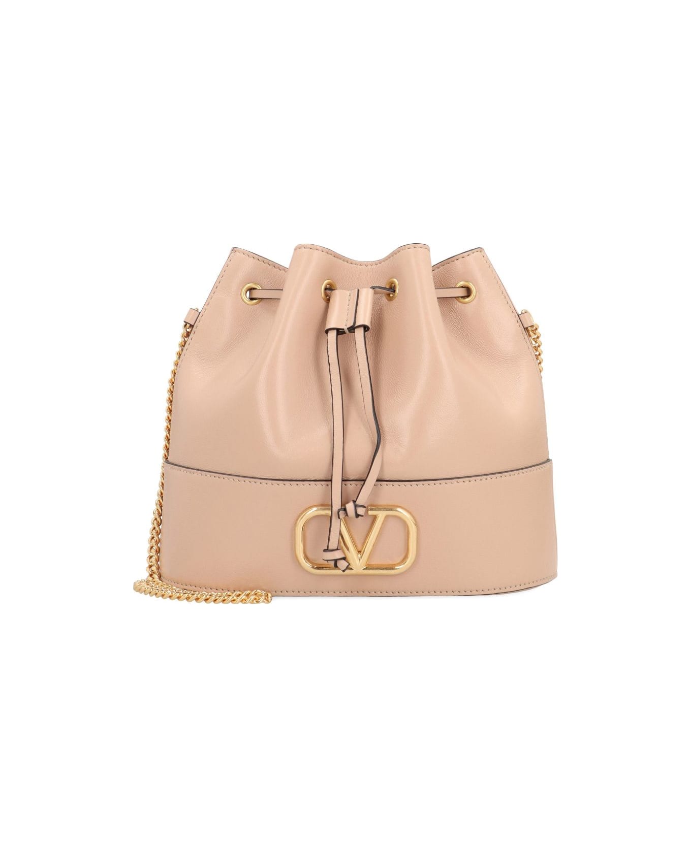 light pink gold-tone metal hardware chain shoulder strap drawstring closure leather