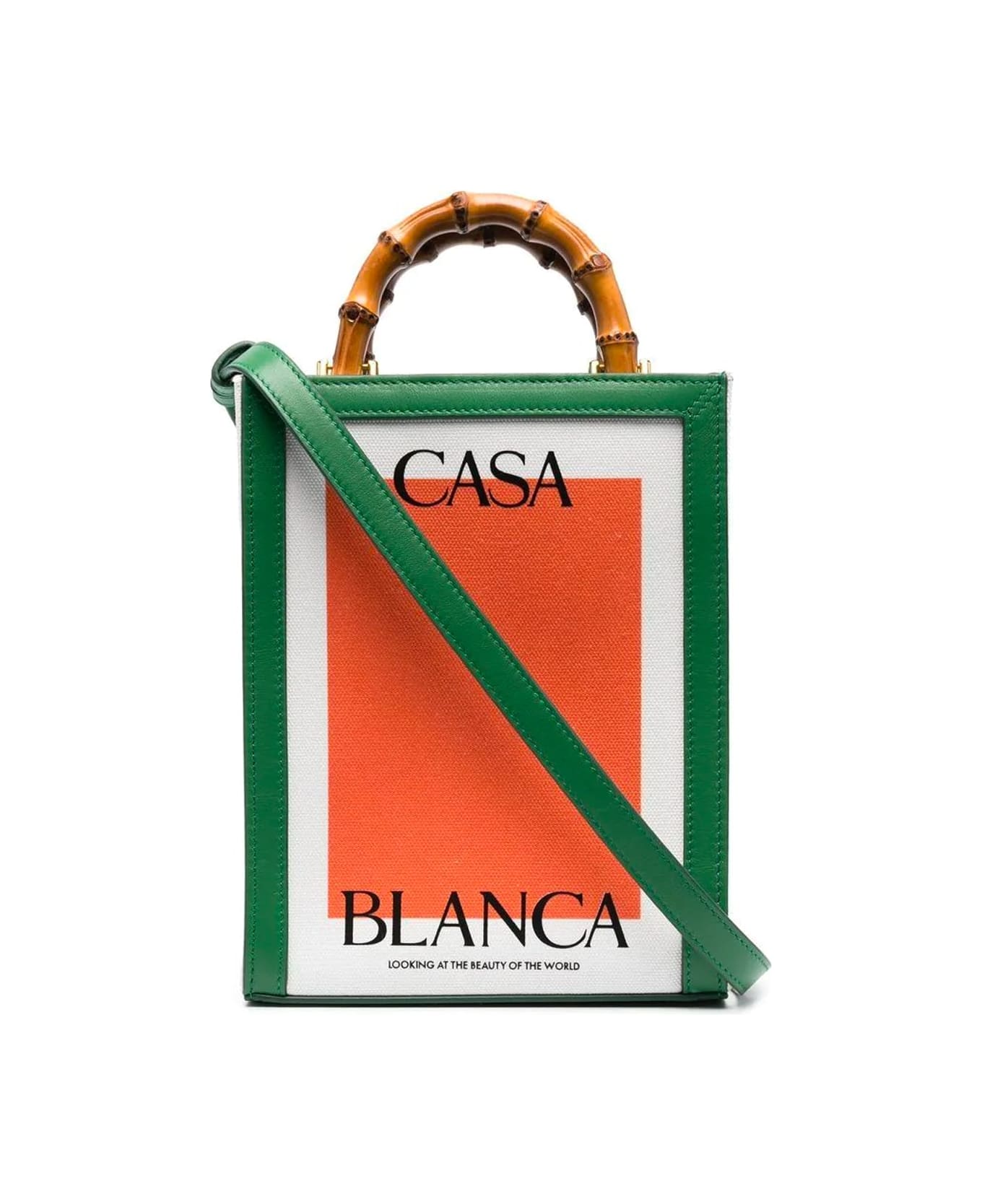 - Composition: 100% canvas - Leather details - Magnetic button closure - Detachable shoulder strap - Double bamboo handle - Printed logo detail - Length 17 cm / 6,7 in - Height 22 cm / 8,6 in - Width 7 cm / 2,7 in