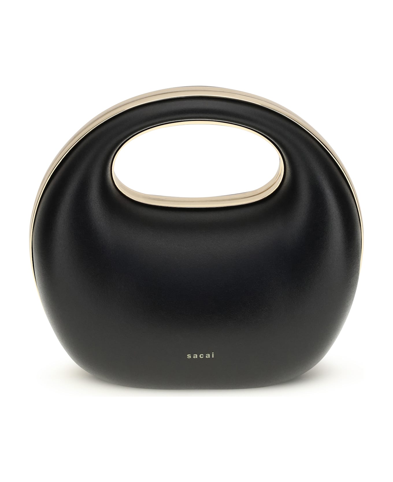 The rigid handbag by sacai embodies sophisticated elegance with its rounded shape and rigid handle. the logo on the front and gold detailing add a touch of understated luxury, while the snap closure ensures practicality and security. perfect for those looking for an accessory that combines contemporary design and functionality, this bag is a must-have to complete any look with style.