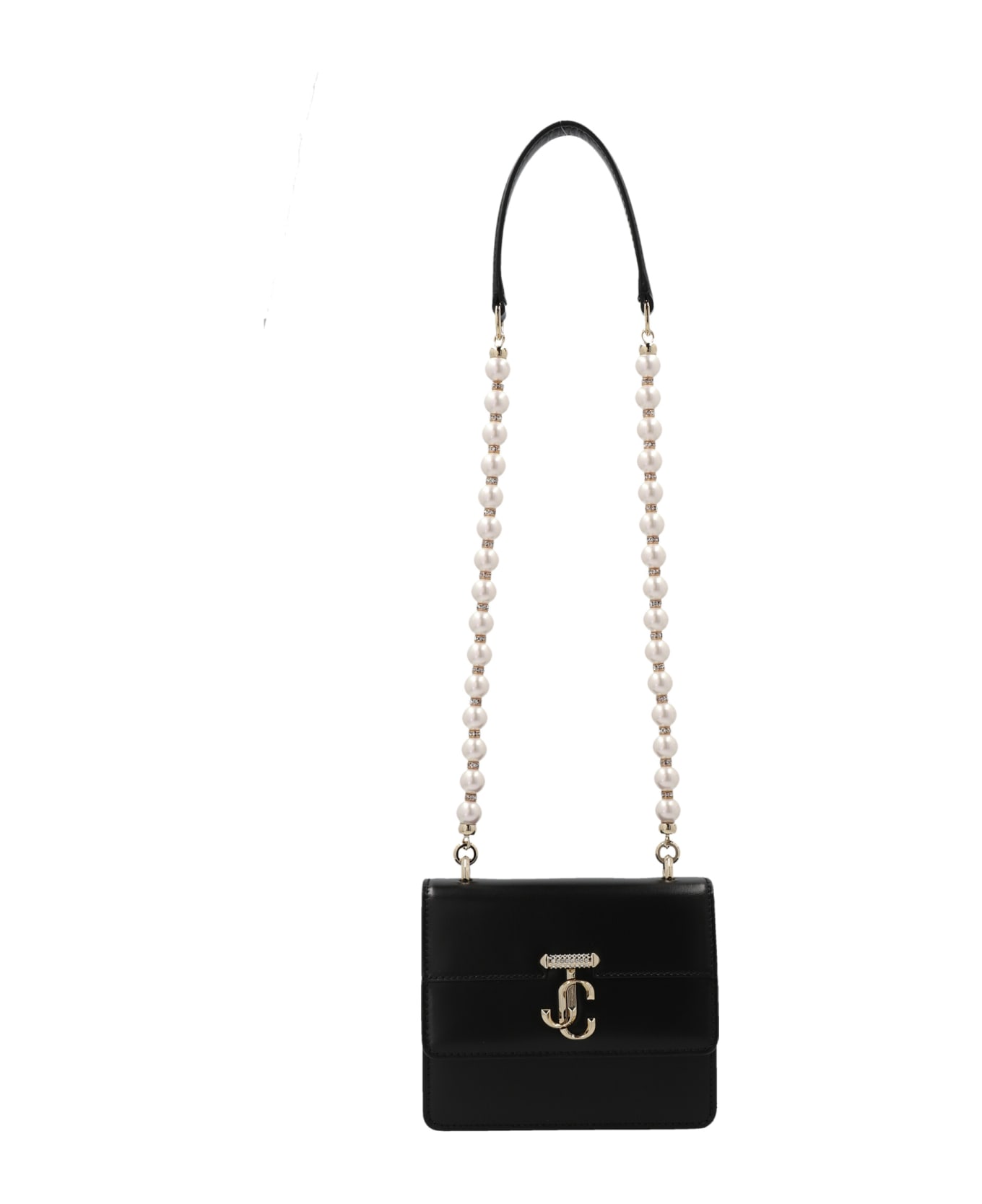 'Avenue Quad XS' satin shoulder bag with a magnetic flap closure with a front logo application, and a leather handle with pearls. Composition: