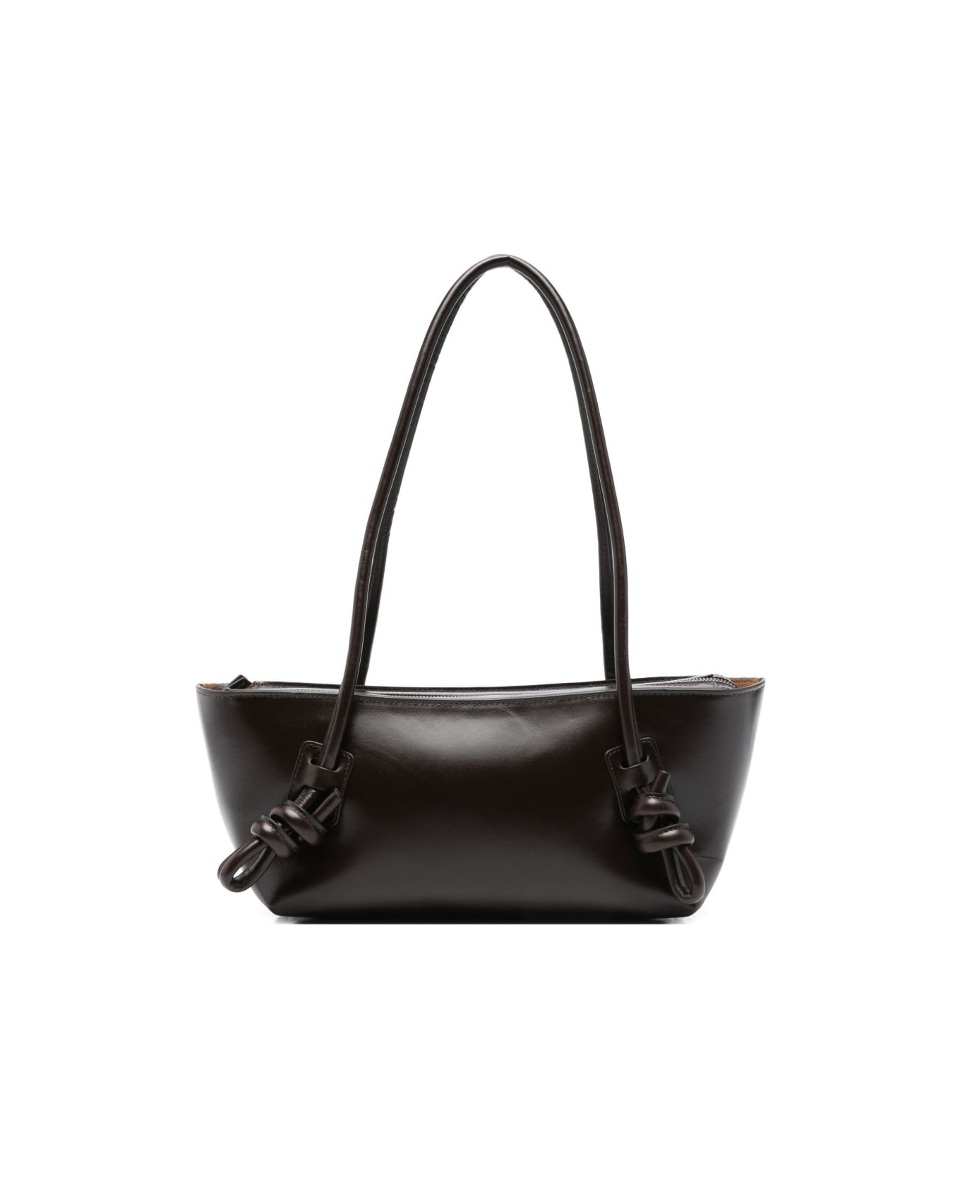 brown calf leather top handles knot detail zip fastening