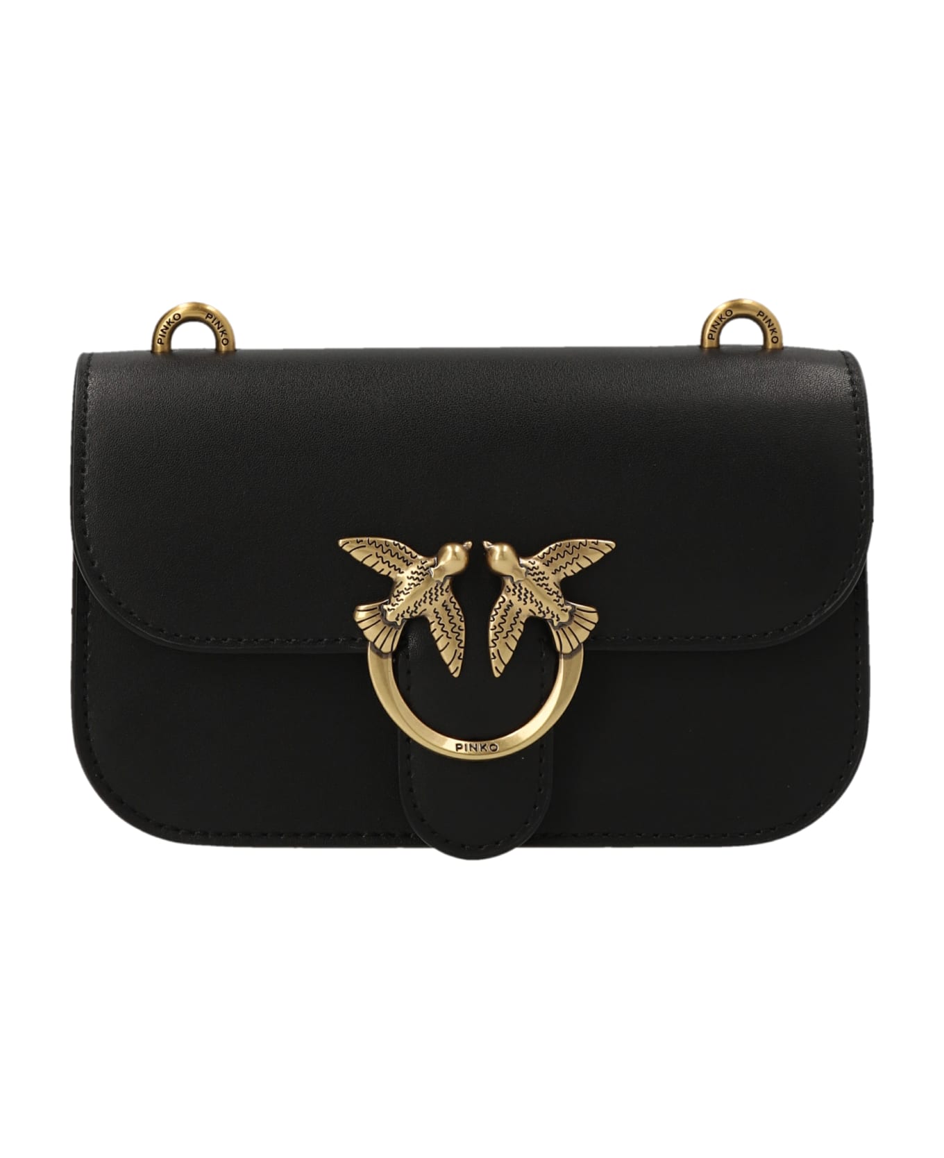 'Love Bell Mini' leather crossbody bag with flap closure with front metal logo, removable chain and leather shoulder strap.