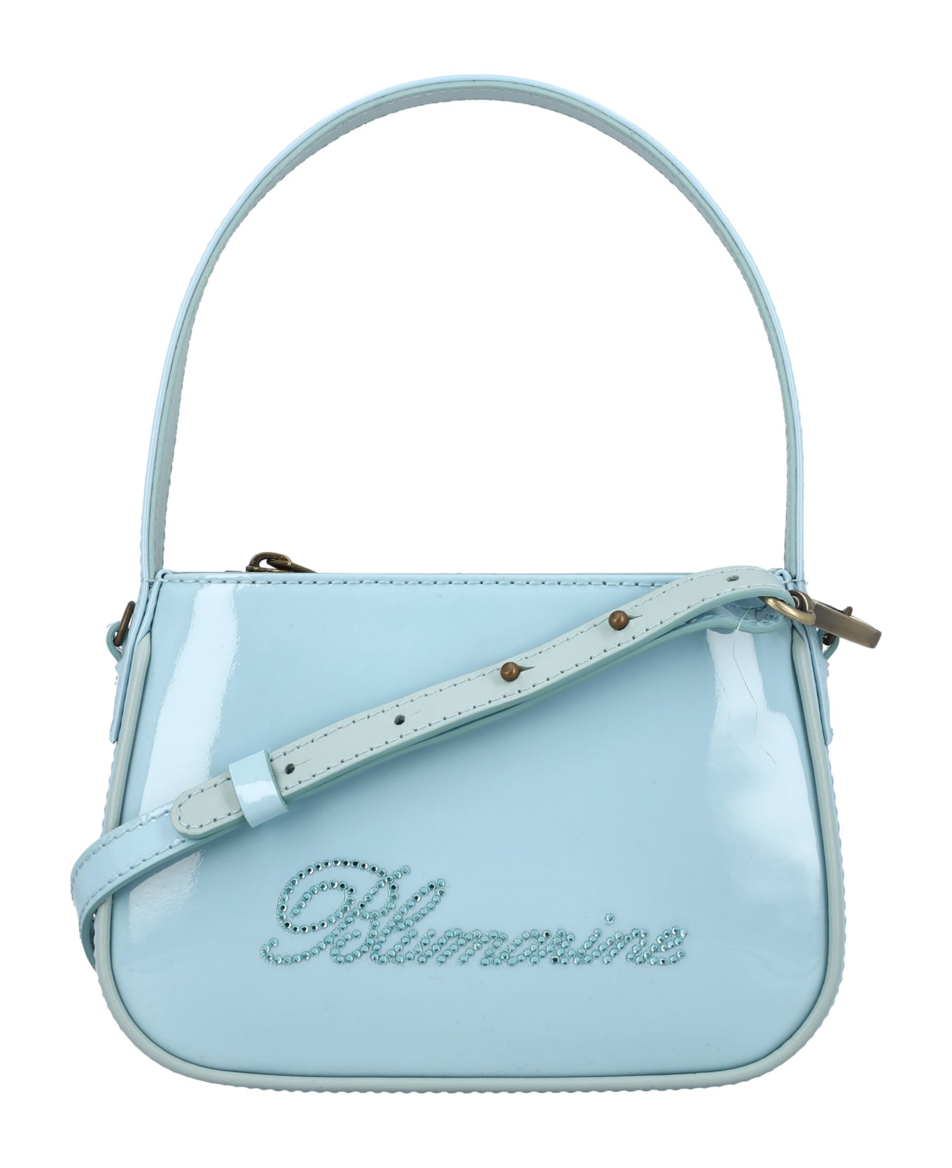 Patent Leather Rhinstone Logo Bag By Blumarine. Featuring: Top Zip Fastening Top Handle Removable And Adjustable Shoulder Strap Rhinstone Logo At Front Fully Lined Width: 18,5 Cm Height: 12,5 Cm Depth: 5 Cm