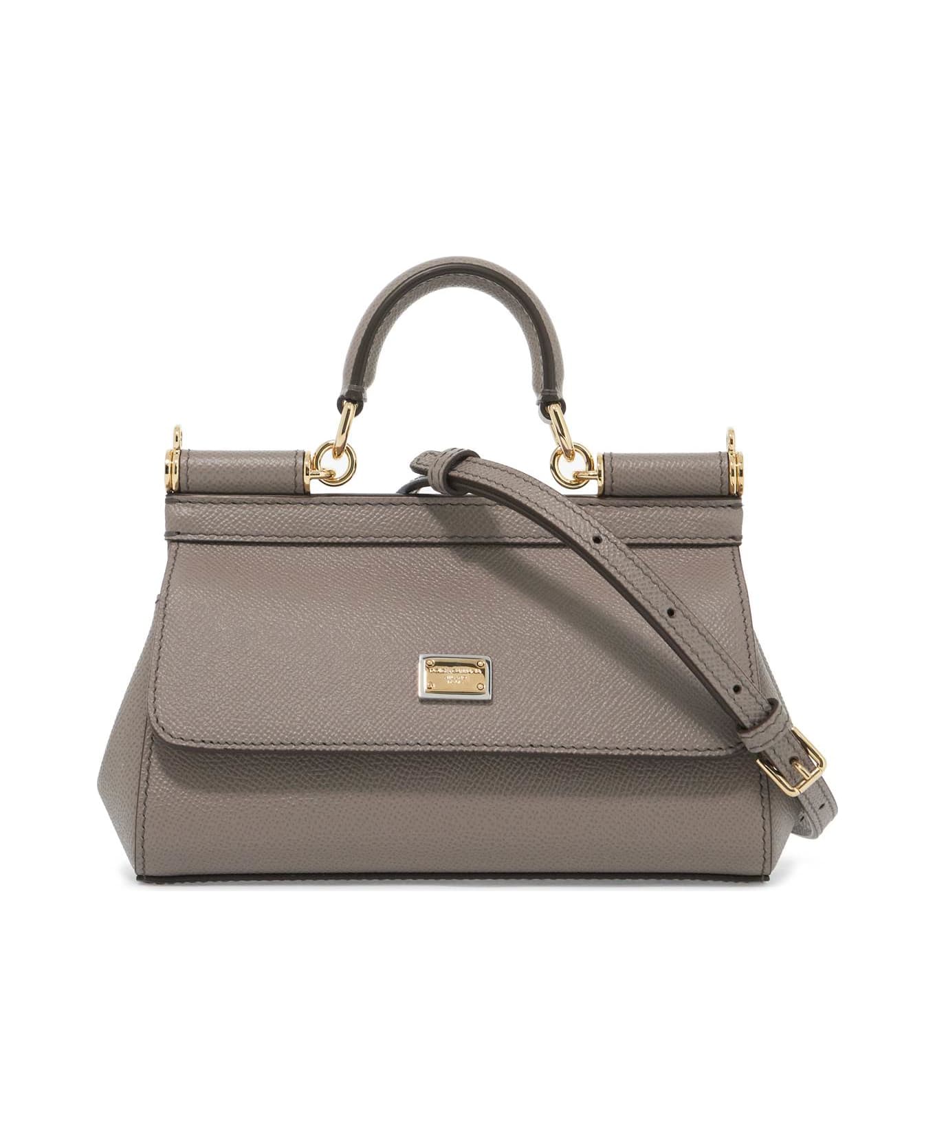 Small Sicily bag by Dolce & Gabbana in Dauphine leather with single top handle, removable and adjustable shoulder strap, flap with double magnetic button closure and the iconic metal logo plate. Leopard-printed fabric lining, gold-finished metalware.