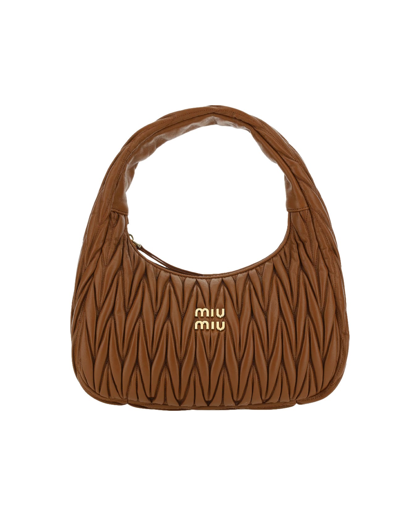 Lambskin wander shoulder bag by miu miu, matelassé effect, iconic brand monogram applied in contrast embossed on front, top zipper closure, main compartment, iconic brand logo plaque applied inside. Composition: 100% % Lamb Ovis Aries Aries