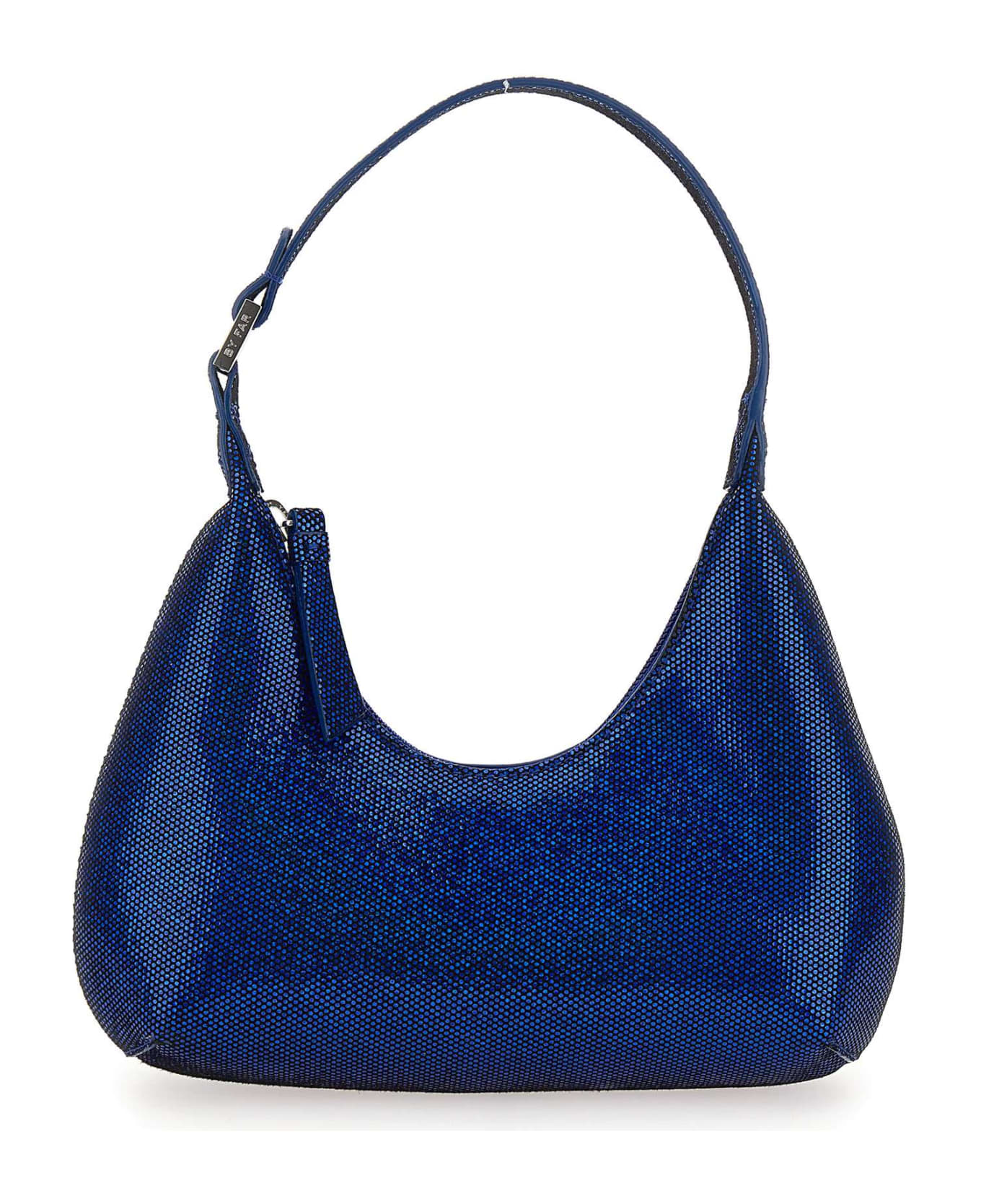 By Far "Baby Amber" in disco dot leather shoulder bag, electric blue, top fastening with zip, internal lining in cotton, top handle, finishes logoed in silver metal, three inside pockets. Dimensions: length 24cm, height 11cm, depth 6cm. Strap length 25cm. Logoed fabric case included.