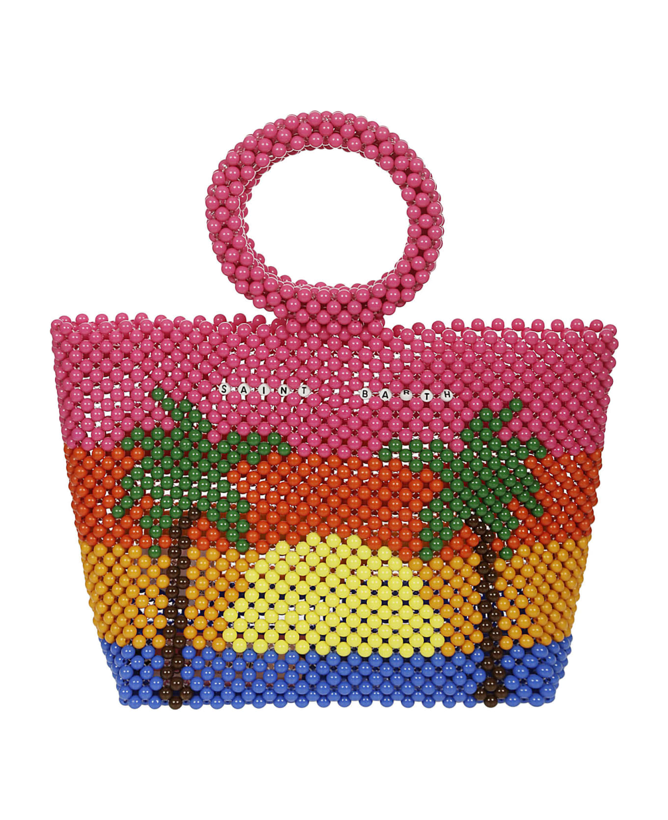 MC2 Saint Barth Multicolor bag, fuchsia handles, logo detail. Composition: 100% Acrylic