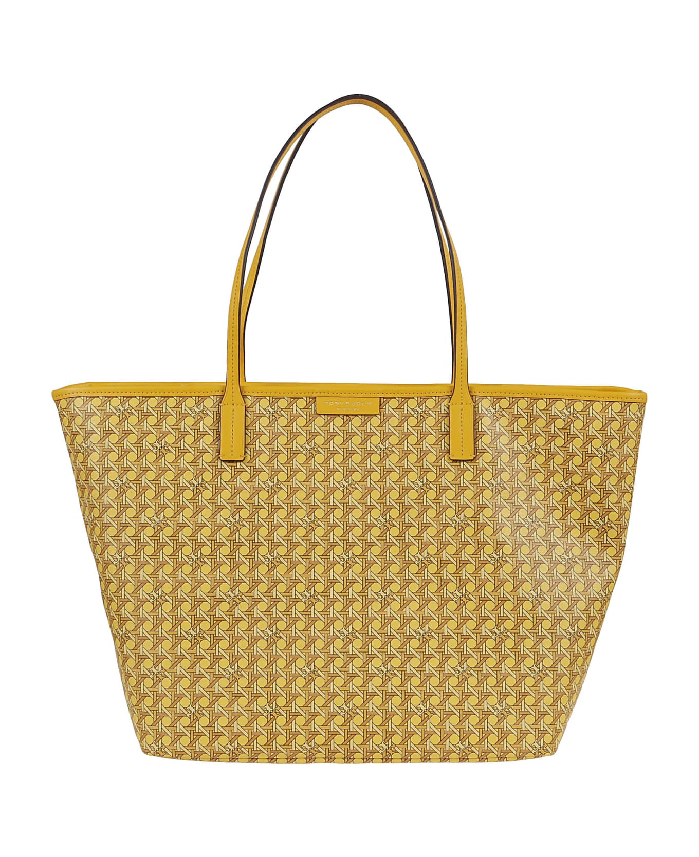 Ready for anything. An elegant and extremely functional shopping bag. Lightweight and durable with water resistant coated canvas, top zip closure, comes with a matching pouch. The thin handles are long enough to allow it to be carried over the shoulder. The iconic woven print is inspired by Tory`s love for the art of basket making, the small motif is eye-catching and neutral at the same time.