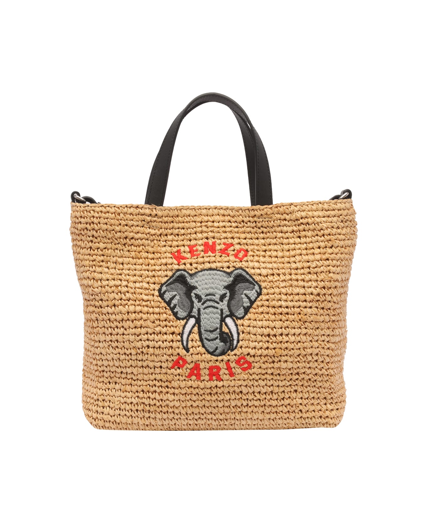 Kenzo beige Elephant print tote bag, one inner zip pocket, double handle, adjustable and detachable shoulder bag