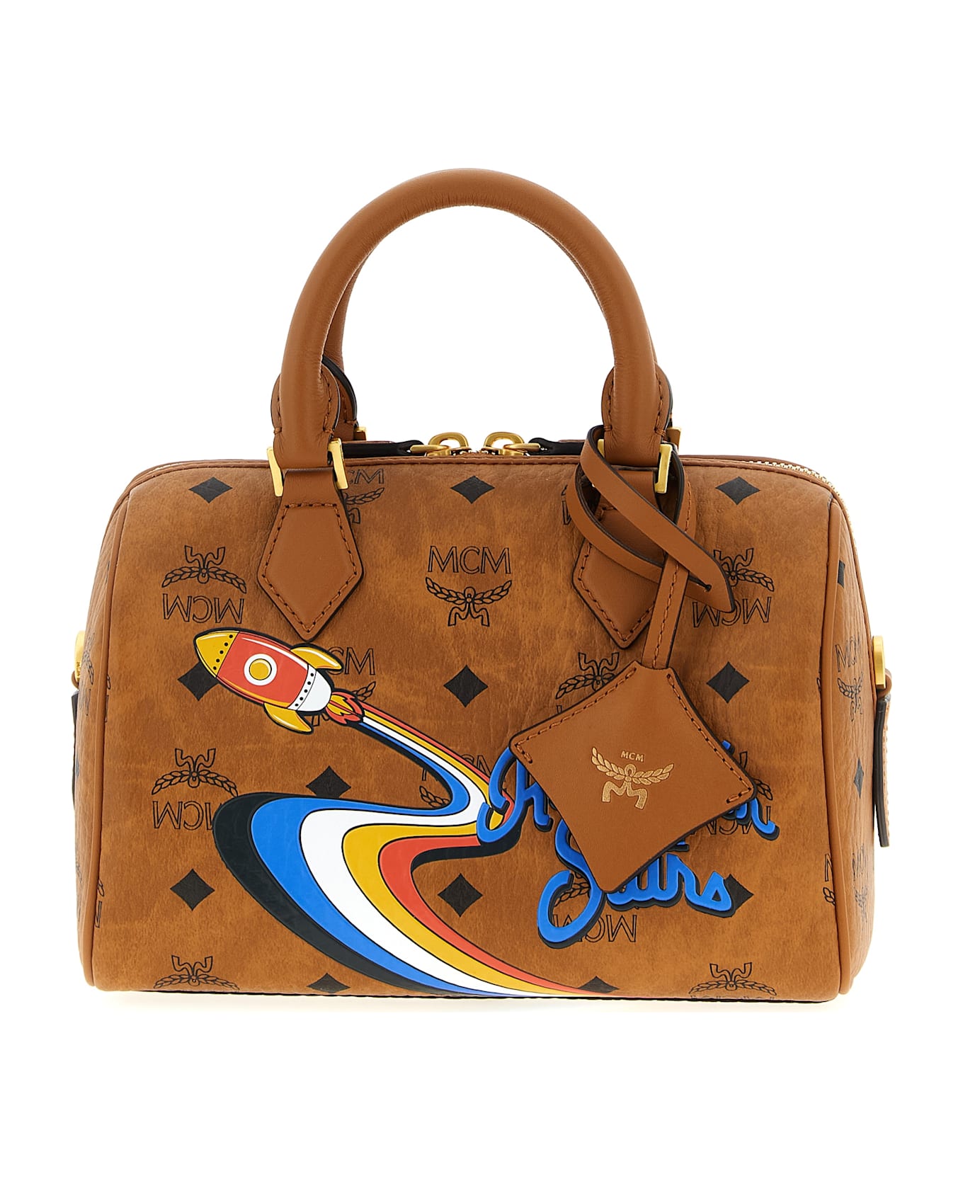'Ella Boston' top case in Visetos monogram canvas and leather with 'Rocket' graphic pattern, double fixed handle, top zip closure, adjustable and removable shoulder strap, leather keyring with removable Bavarian diamond.