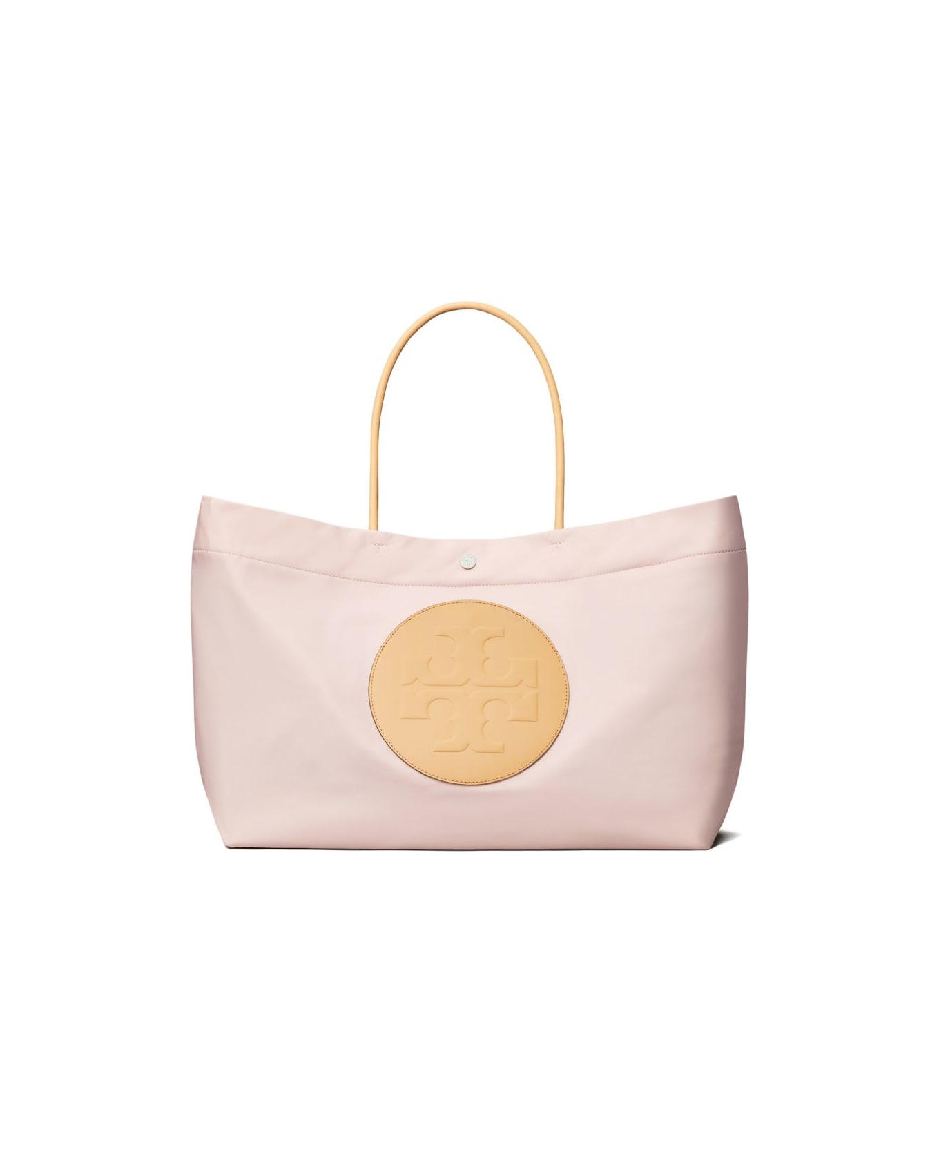 light pink top handle logo appliqué internal slip pocket