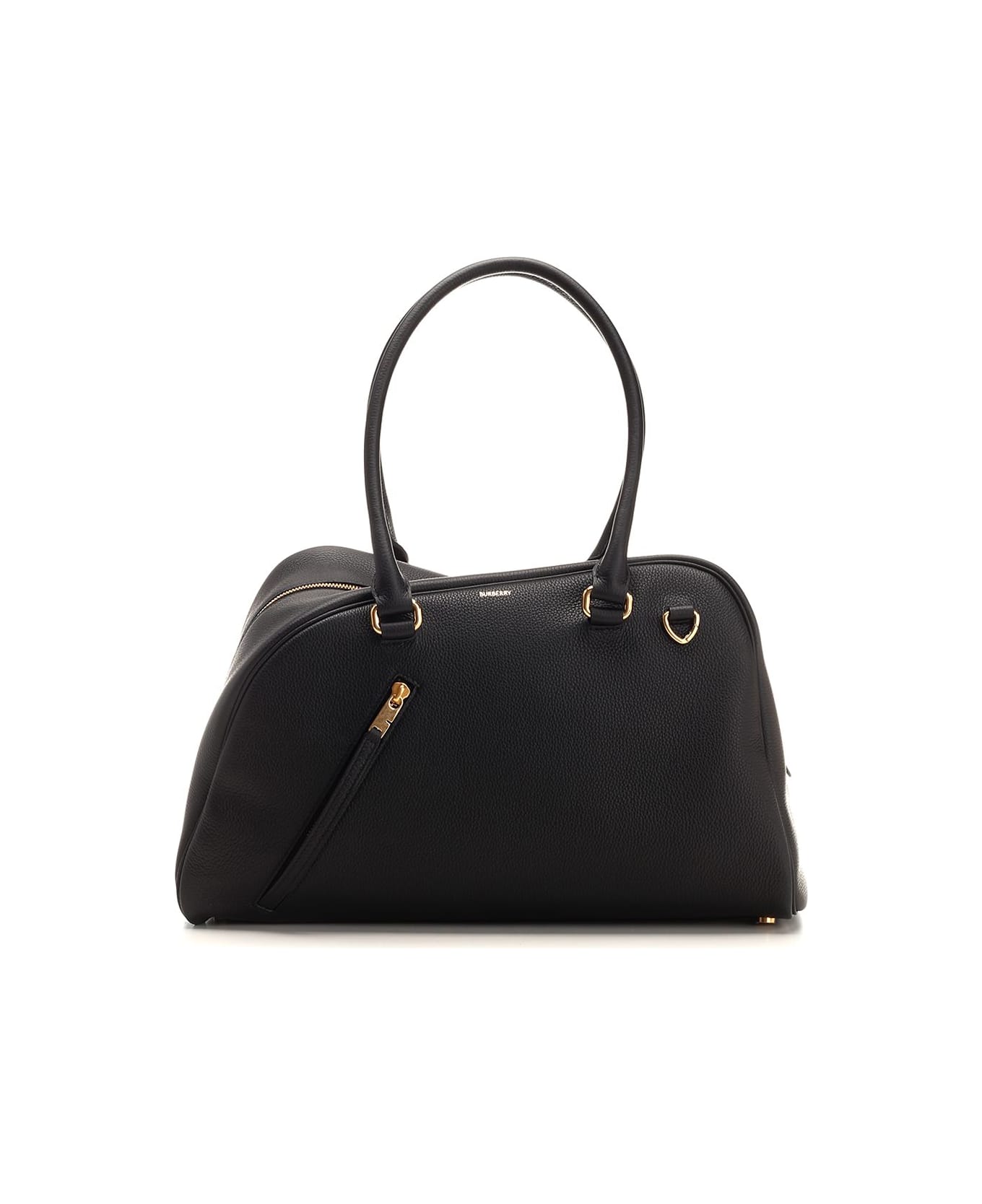 Large "Shield Twin" bowling bag by Burberry, made of calfskin with soft suede interior, zip closure, external zip pocket, internal slip pocket, Burberry signature embossed on the front. Composition: 100%CALF GRAIN LEATHER (BOS TAURUS)
