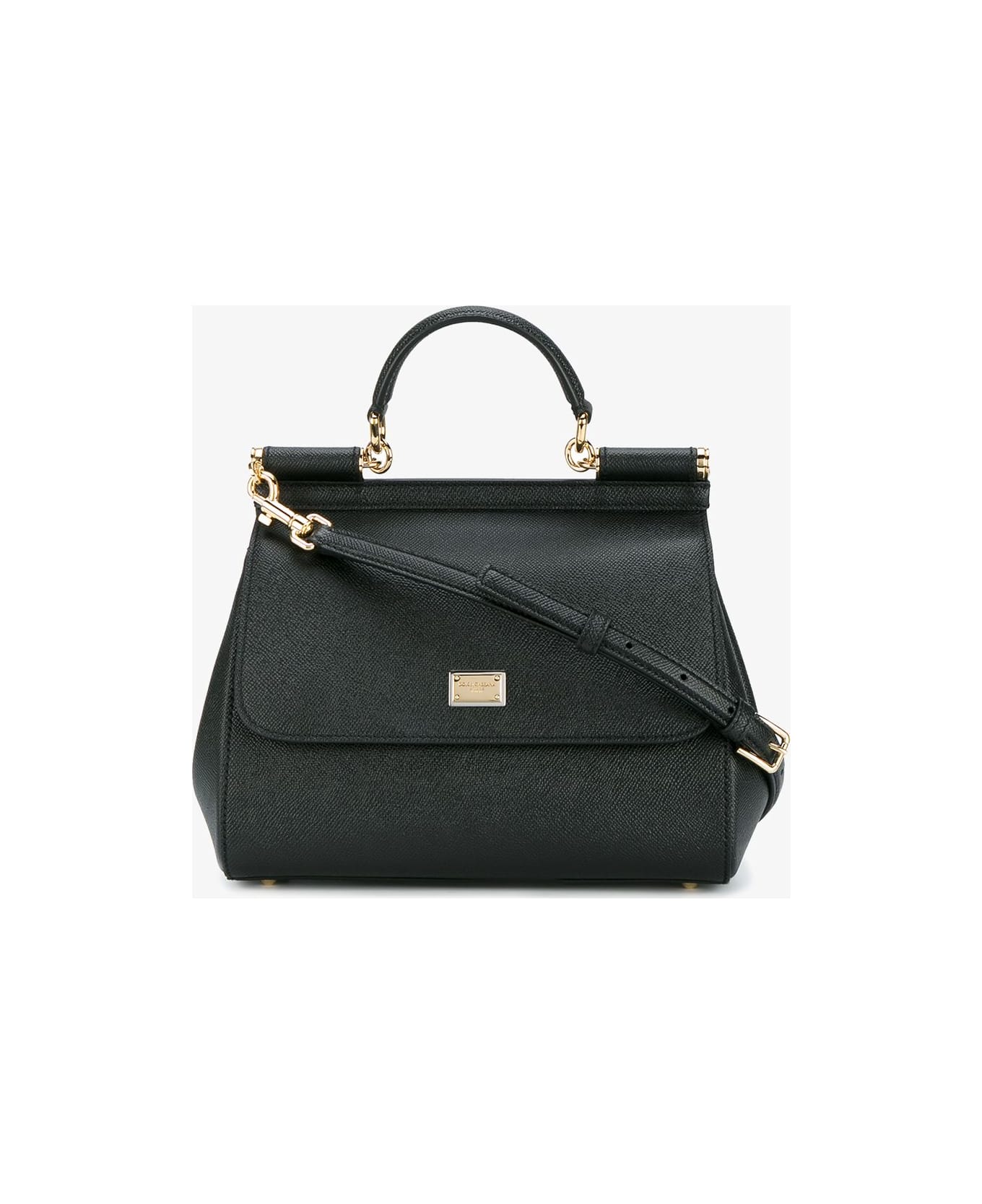Medium Sicily Tote from Dolce & Gabbana: Black Medium Sicily Tote with top handle, fold over top, magnetic closure, front logo plaque, internal compartment and zip pocket.