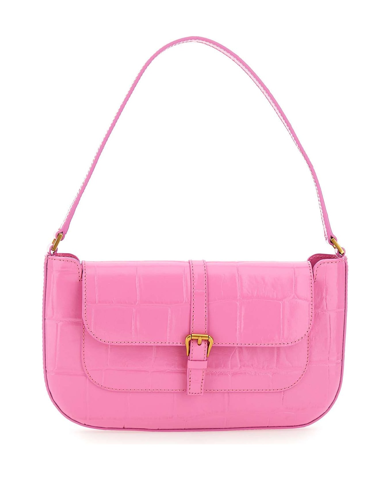'Miranda' By Far crocodile print leather shoulder bag, baby pink, flap fastening with button, gold hardware, internal slip pocket, internal application with logo and cotton lining. Measurements: length 26cm, height 15cm, depth 2cm.