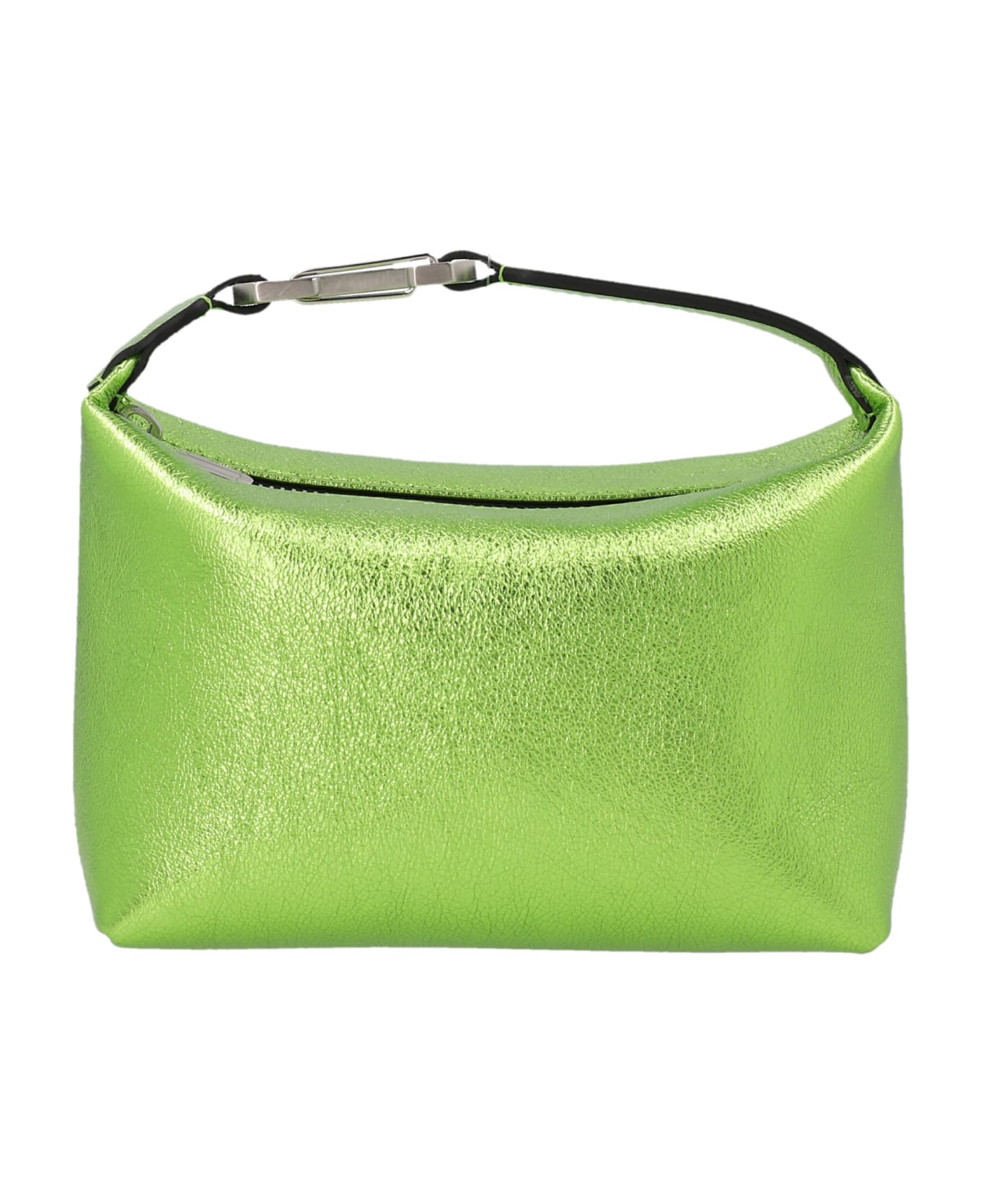 Borsa a mano 'Moon' in pelle laminata, manico fisso in pelle con dettaglio moschettone logato a contrasto, chiusura zip.