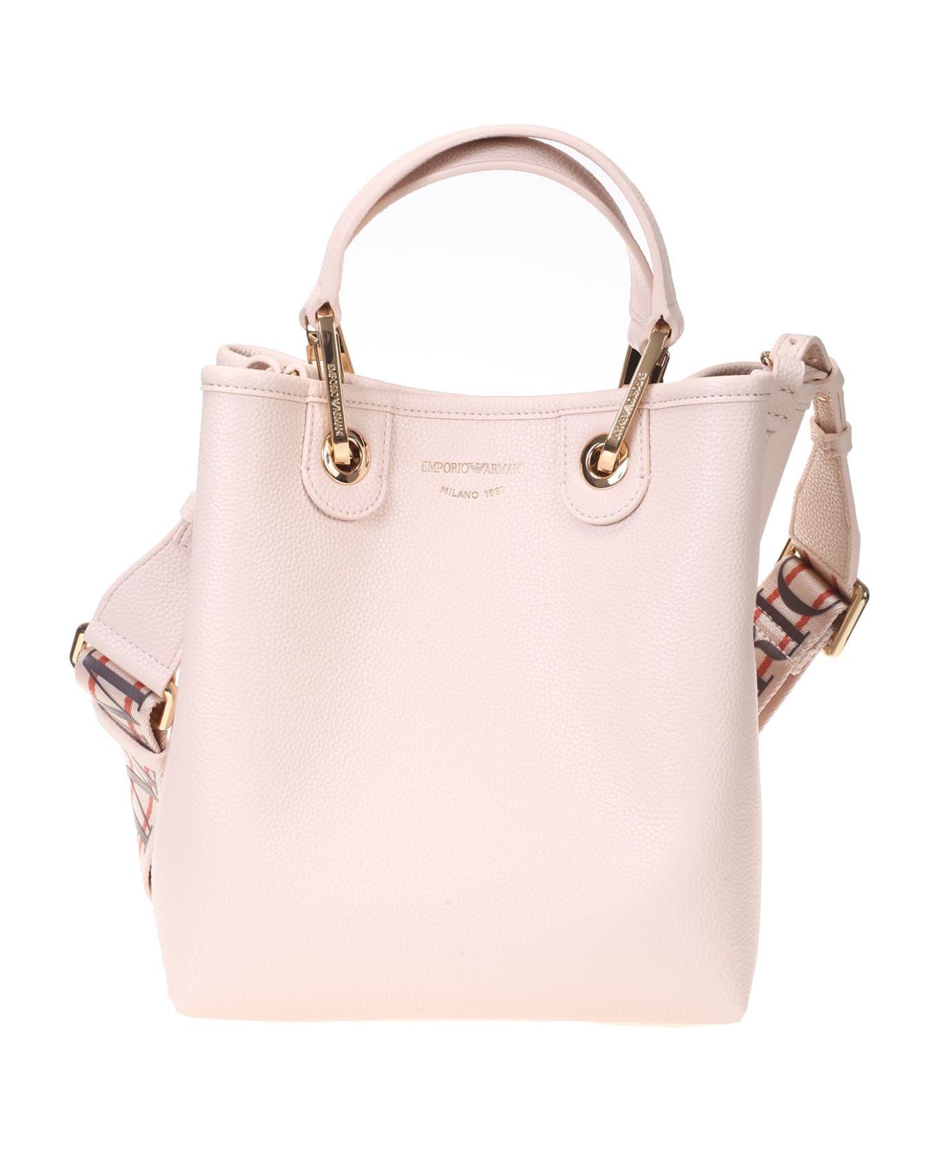 Emporio Armani MyEA vertical shopper with deer print. Magnet closure and screen-printed logo. Item embellished with gold snap hooks and tag coordinated with the bag, removable and with embossed lettering logo. Coordinated internal pouch with zip. Provided with removable logoed shoulder strap. Dimensions: 21. 5 x 25 x 10cm. Composition 100% Polyurethane. Made in Italy.