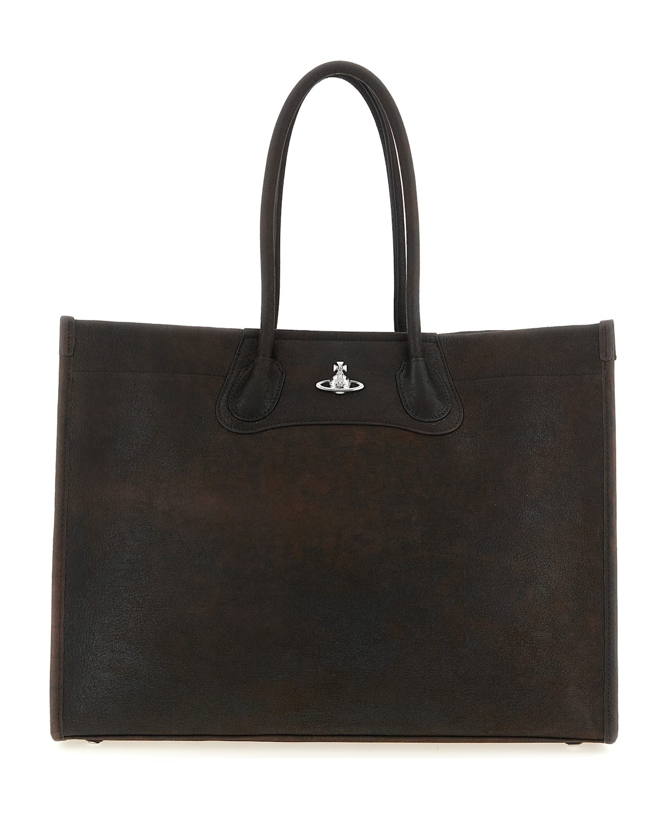 'Troy' leather shopping bag with rectangular silhouette, front metal 'Orb Bas Relief' logo, double fixed tubular handle, inner magnetic closure. Composition: 100% lamb leather (Ovis aries)