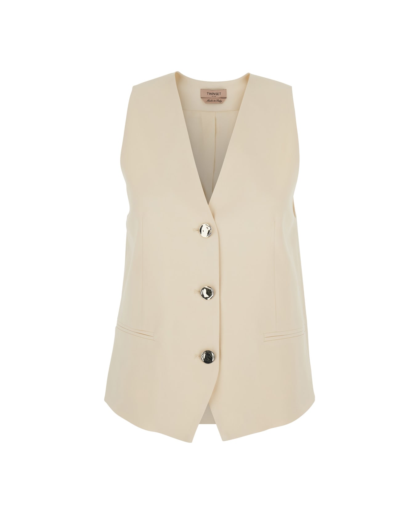 Beige Vest With V Neck And Front Button Closure In Fabric Woman