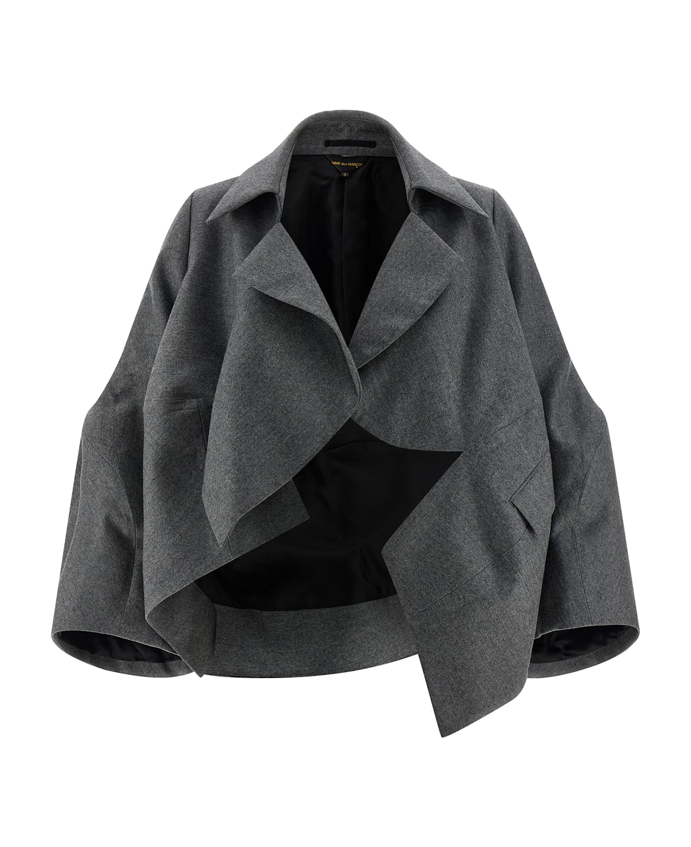 Deconstructed wool blazer with shirt collar and lapels, no closures, flap pockets, extra wide long sleeves, Composition: 100% wool