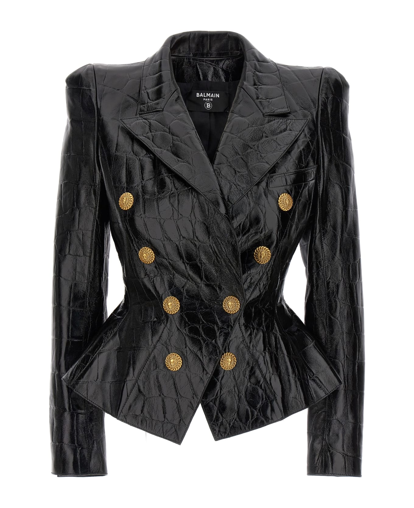 Double-breasted blazer in coconut-print leather with button closure, long sleeves, and padded shoulders. Composition: 100% goat leather