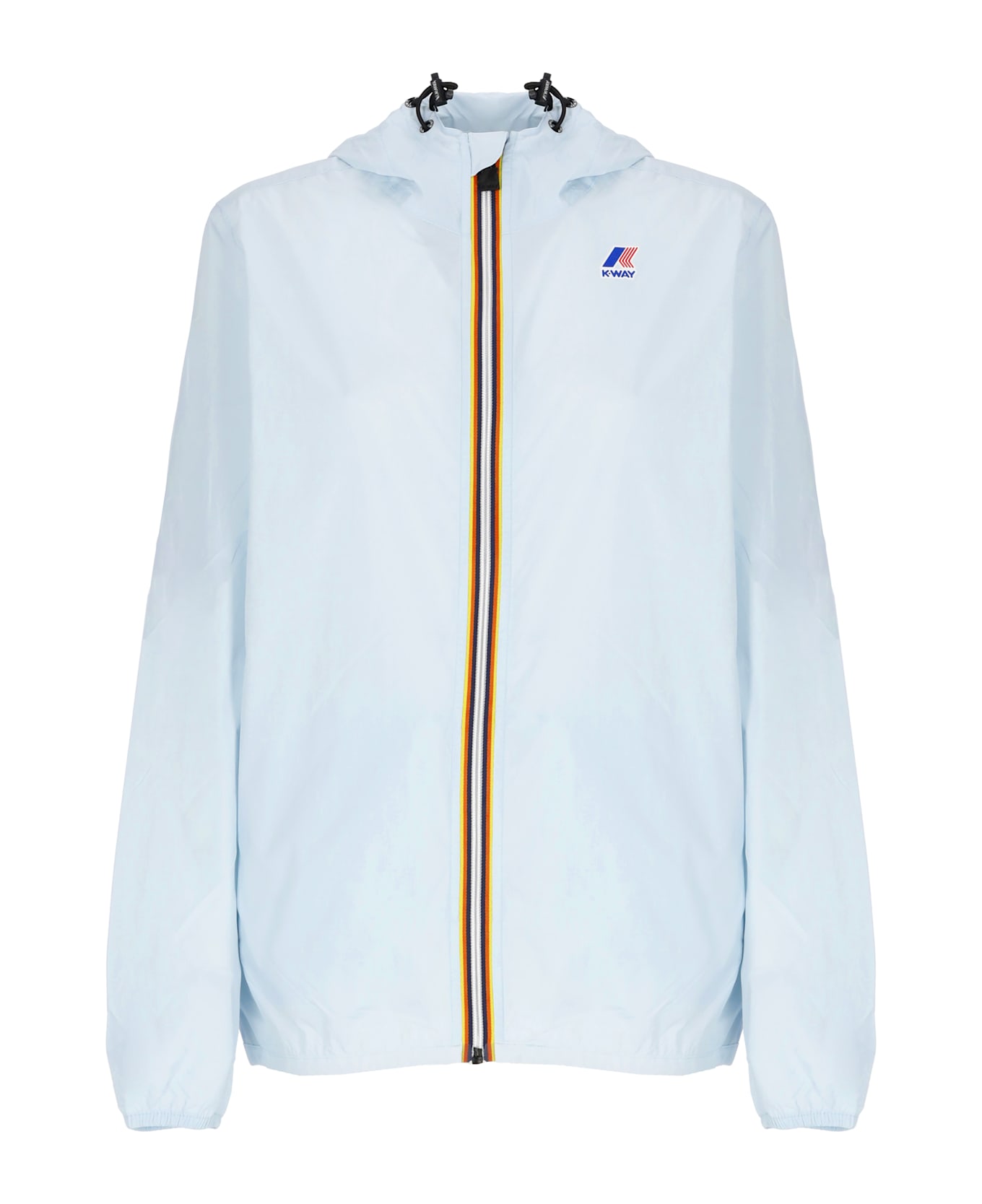 - Light blue K-Way waterproof fabric jacket for woman - Hood - Front zip fastening - Long sleeves - Two front zip pockets - Front contrasting color logo