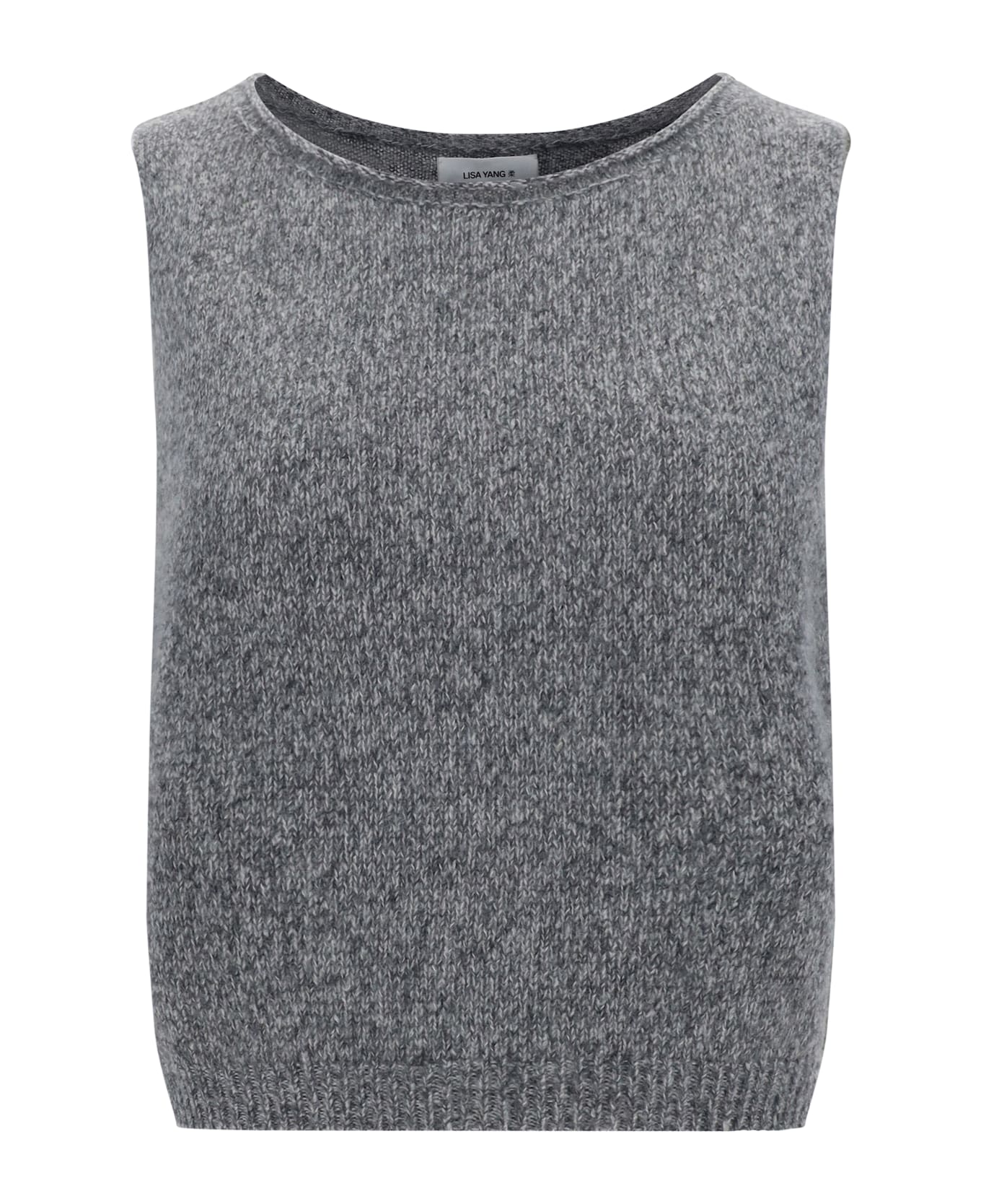 Cashmere devine top by lisa yang, sleeveless design, ribbed hem, monochrome pattern, regular fit.