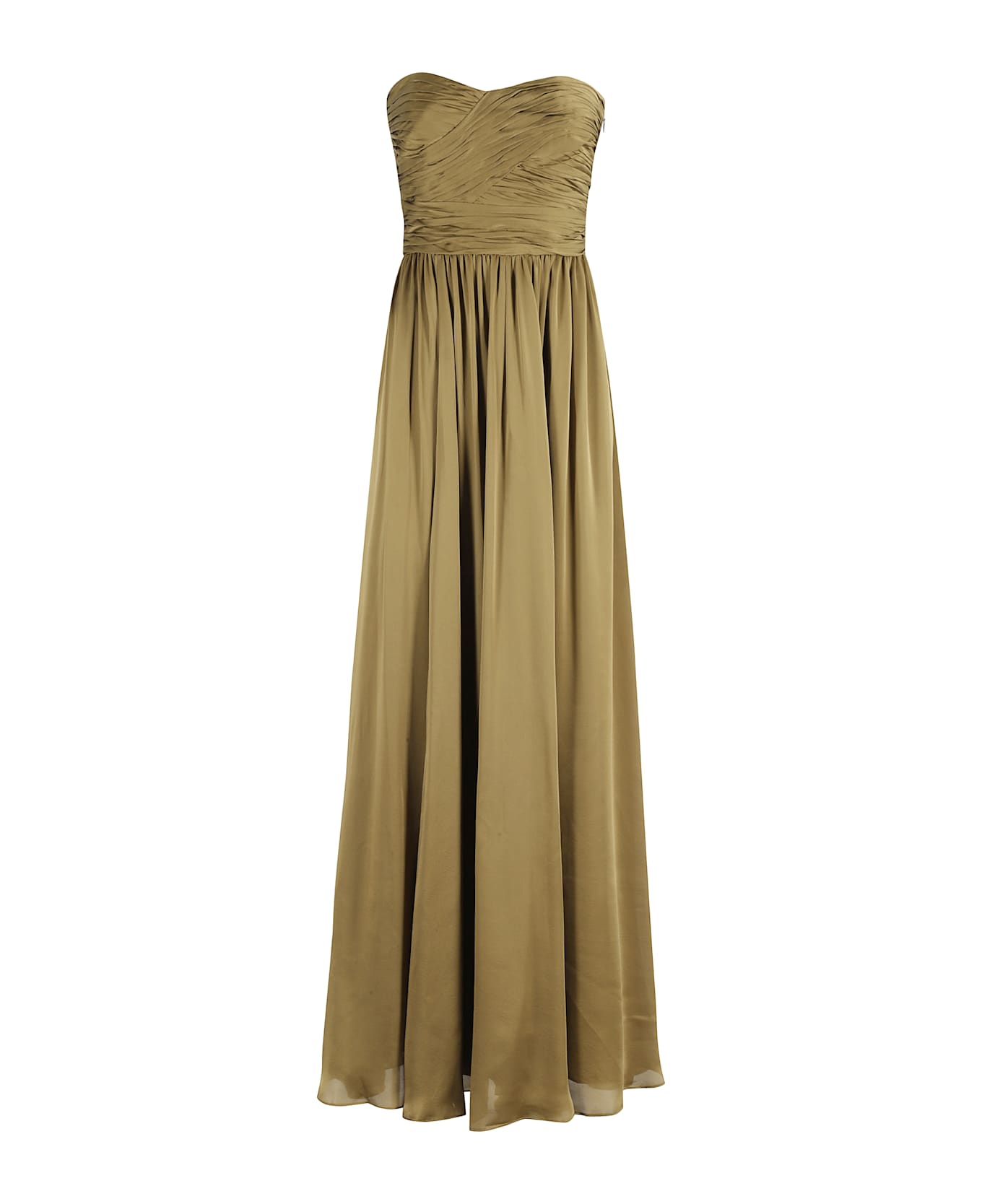 Anastasia dress - Ulla Johnson - willow color - satin chiffon - sweetheart neckline - draped bodice - adjustable inner bustier - wide skirt with pleats - hidden side zipper - side pockets - foot length
