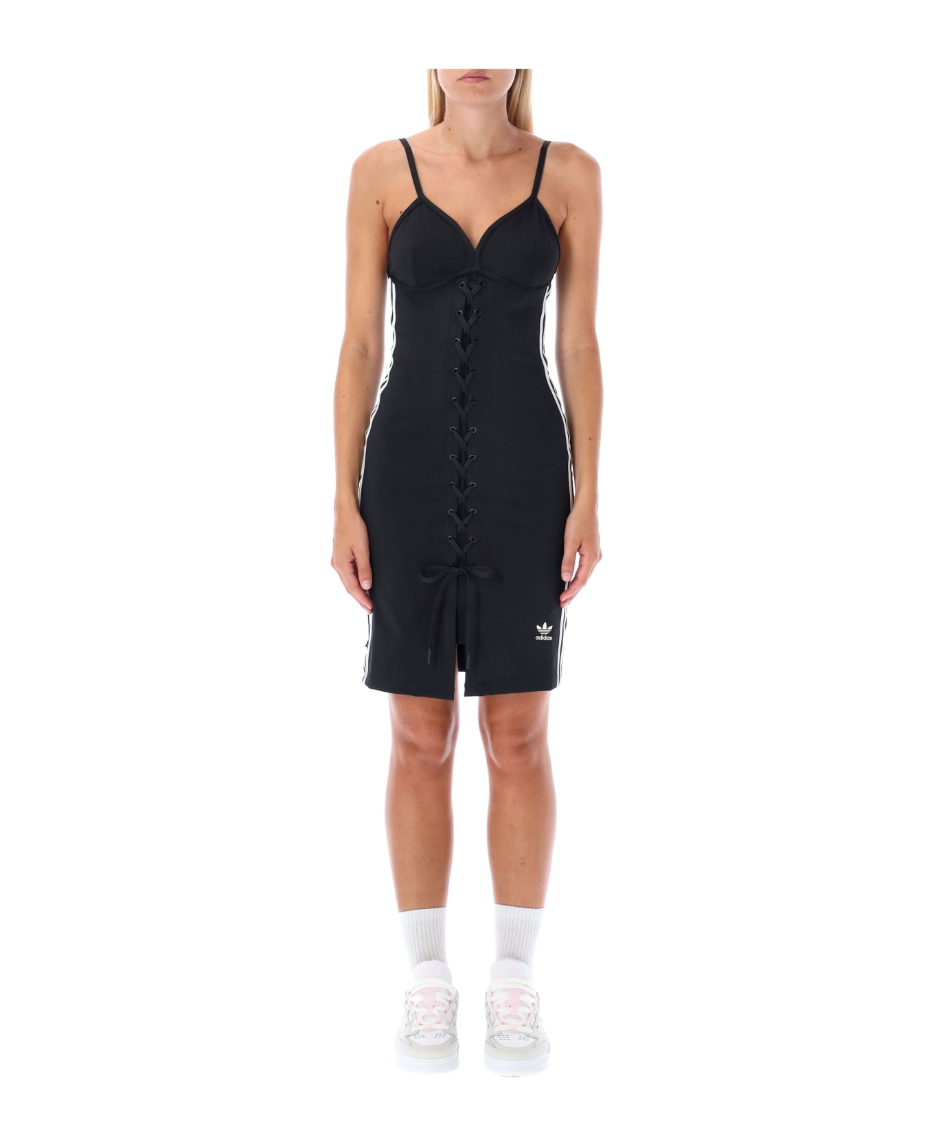 Stretch Laced Strap Dress By Adidas. Featuring: Fitted Design Adjustable Spaghetti Straps Triangle Cup Central Panel With Laces Signature White Stripes At Side Logo Print At Hem Mini Length Model Is 1,74 M Tall And She's Wearing Size 40