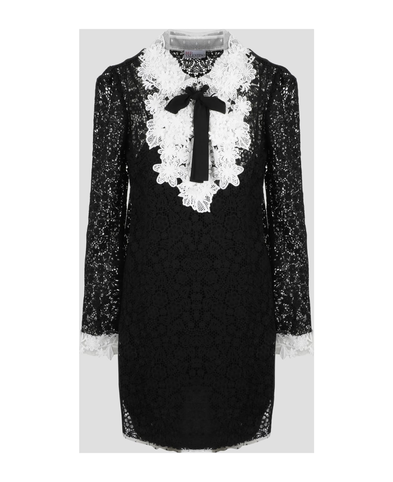 Dress by Red Valentino, in macramé with contrasting bib and collar made from macro flowers. - FW22