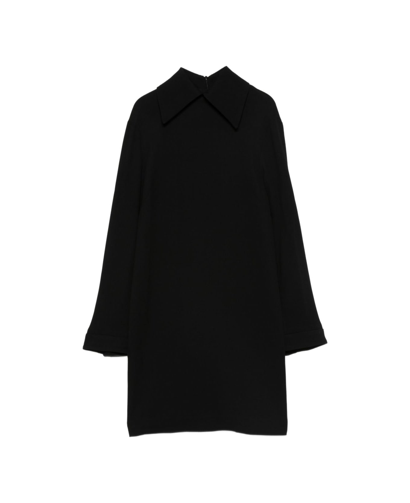 black classic collar long sleeves buttoned cuffs concealed rear zip fastening straight hem