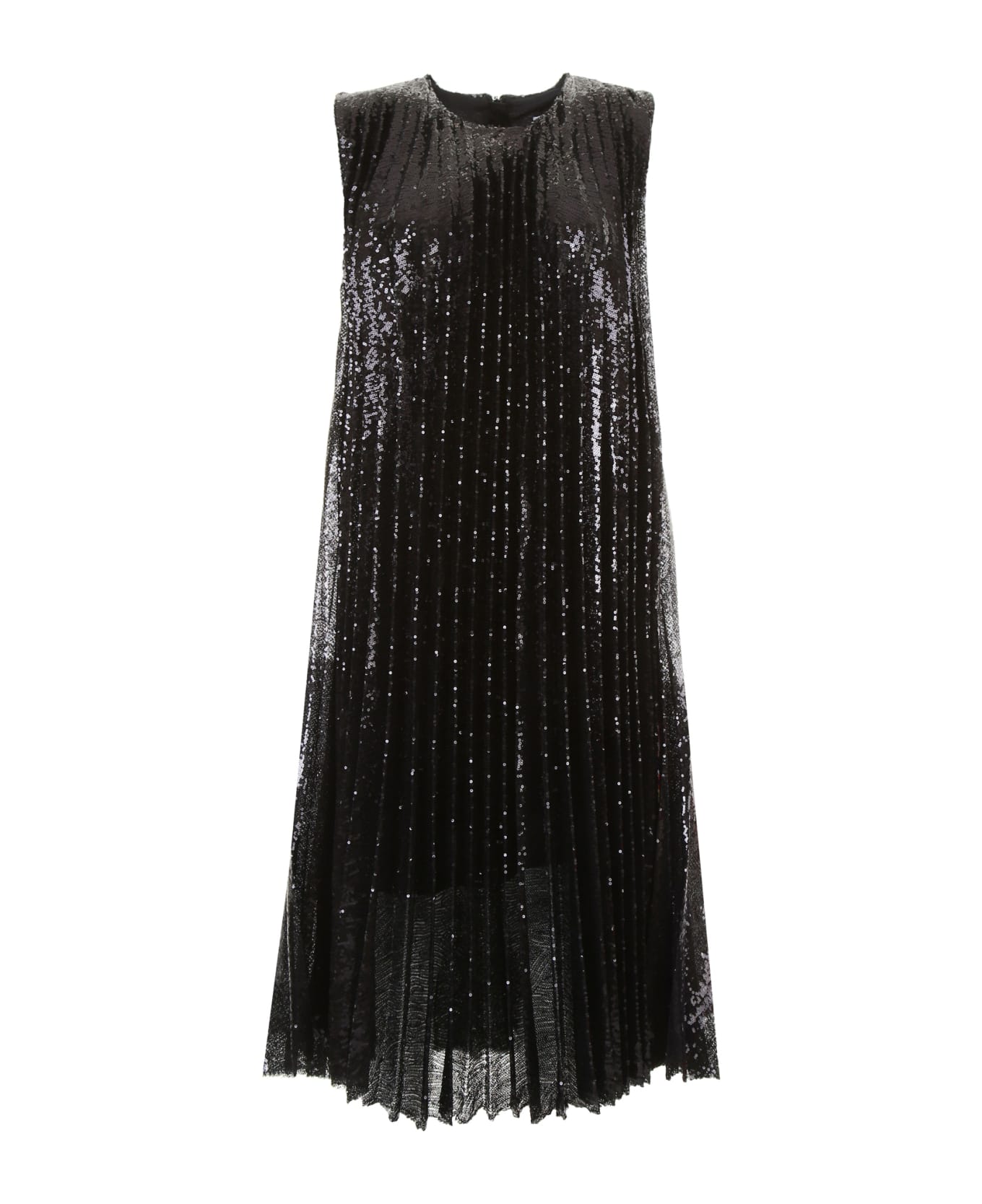 MSGM A-line pleated dress with all-over micro sequins. It features multicolor floral-printed sides, concealed back zip closure, satin lining. Model height is 177 cm and she is wearing a size IT 40.