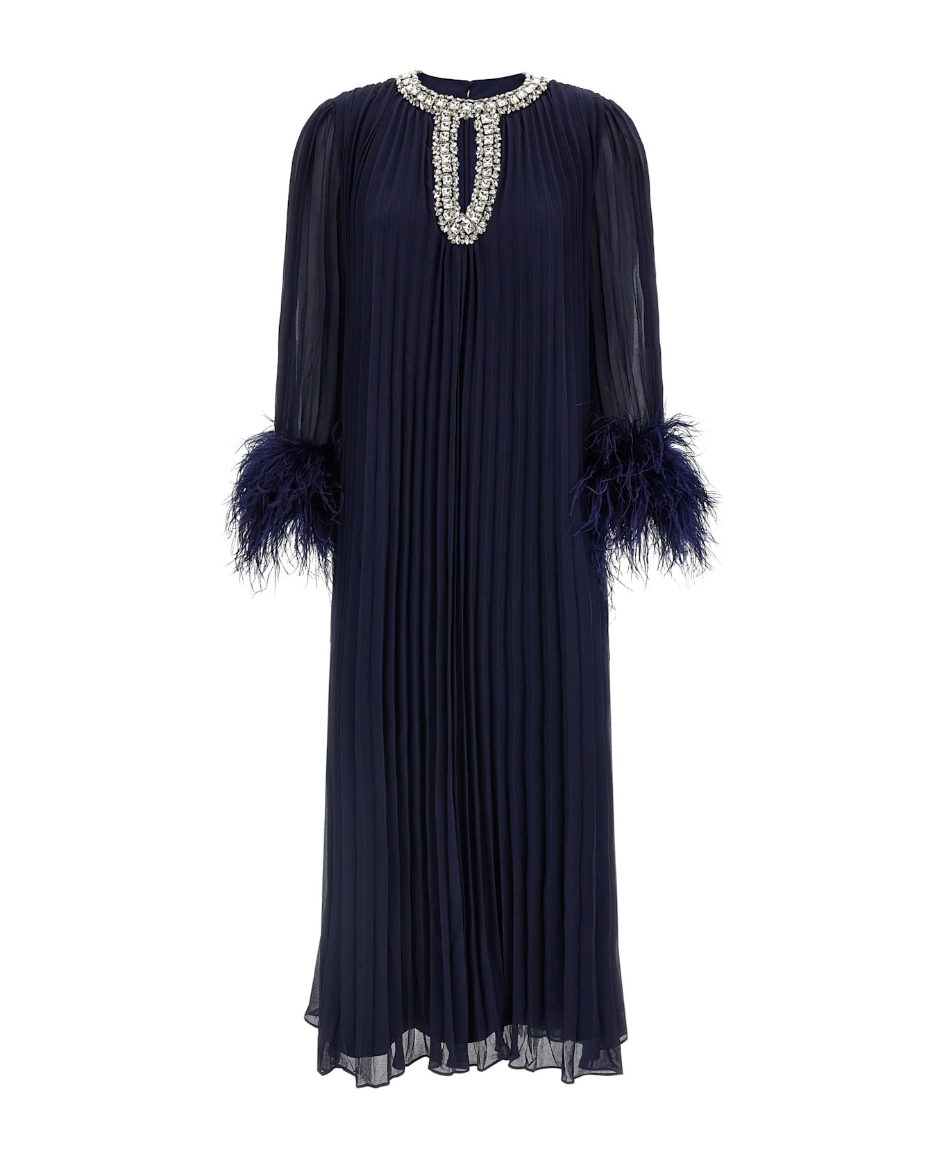 'navy Chiffon Feather Midi' Dress