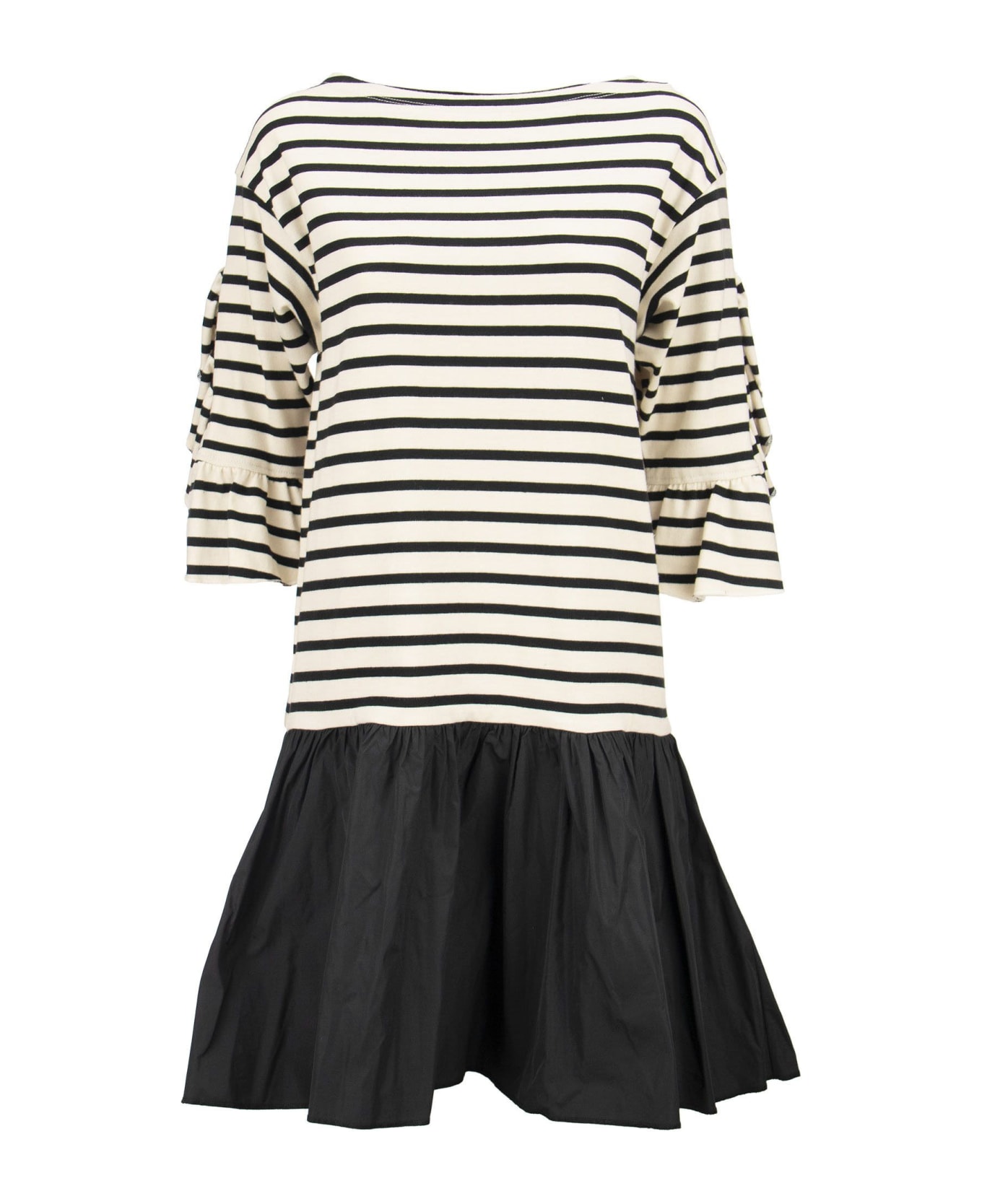 Striped cotton jersey t-shirt dress with taffeta flounce and ruffles along the sleeves. - Boat neckline - Regular fit DESIGNER ID: WR3MJ07E61M E41 Composition: Cotton jersey (100 % Cotton)