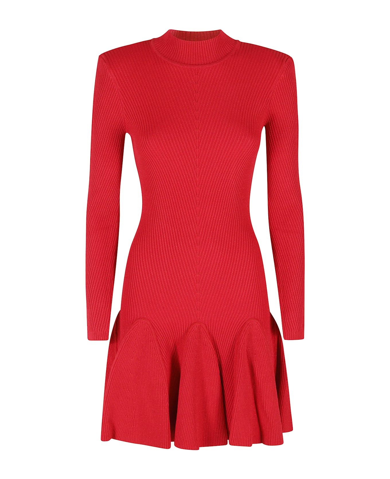 Sydonie dress - Retrofete - Red color - High neck - Long sleeves - Mini length - Ribbed fabric - Flared skirt