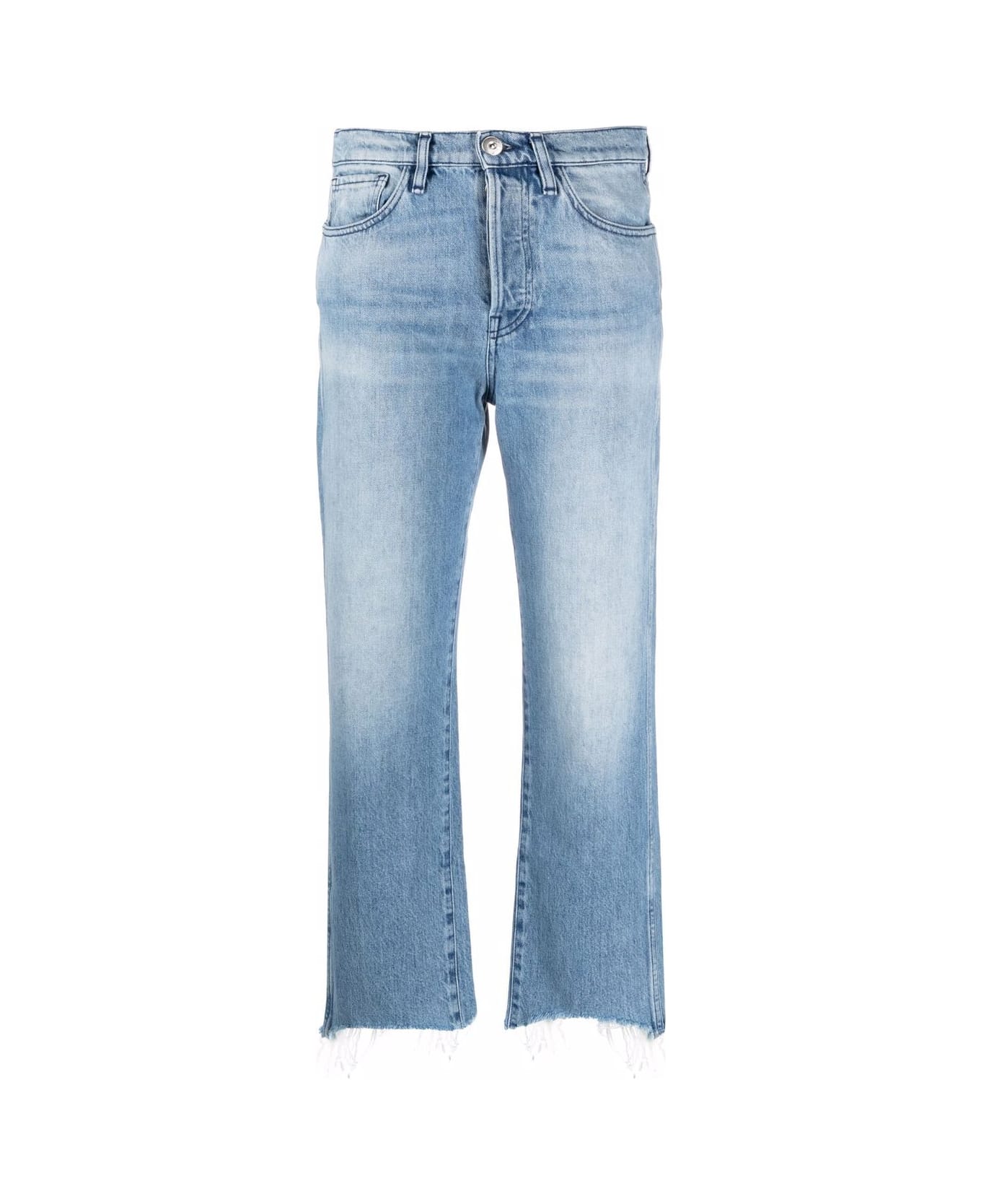 Byrd-blue cotton mid-rise cropped jeans from 3X1 featuring mid-rise, cropped leg, front button and zip fastening, belt loops, classic five pockets and raw-cut edge.
