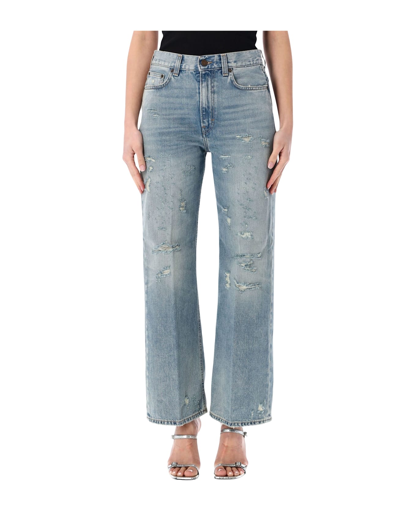The Haikure Winny Broken Jeans In Light Blue Denim Combine A Relaxed Straight-leg Fit With A Contemporary Distressed Aesthetic. Featuring A Button And Zip Fly, Five-pocket Design, And Subtle Abrasions, These Jeans Offer Effortless Style And Everyday Versatility. Straight-leg Button And Zip Fly Five-pocket Design Distressed Denim Alessandra Is 1,75 M And Wears Size 26