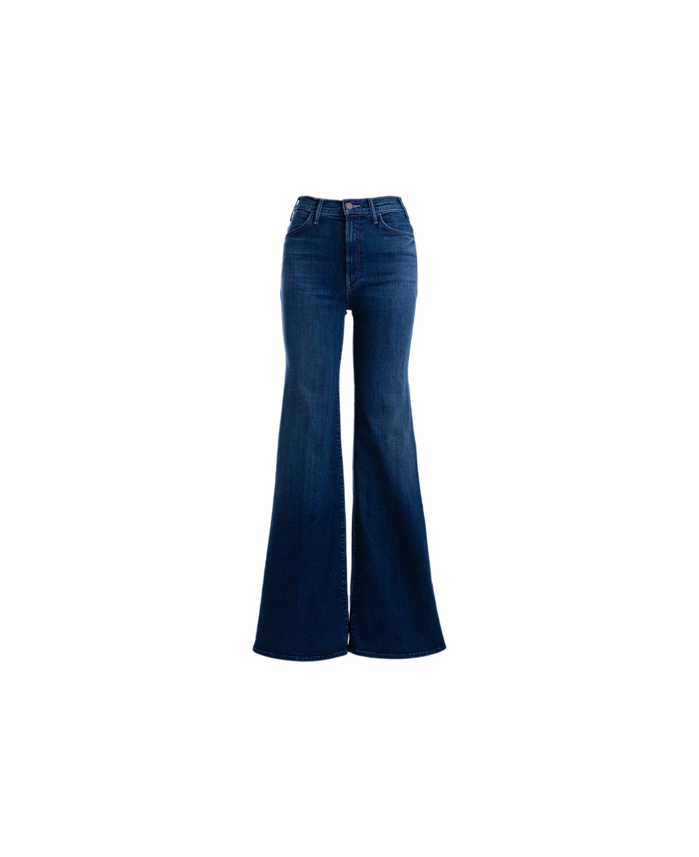 Mother "The Hustler roller heel" woman jeans, high waist, front closure with button and zip, two side slit pockets, two flap pockets on back, fabric patch on back, flared hem.