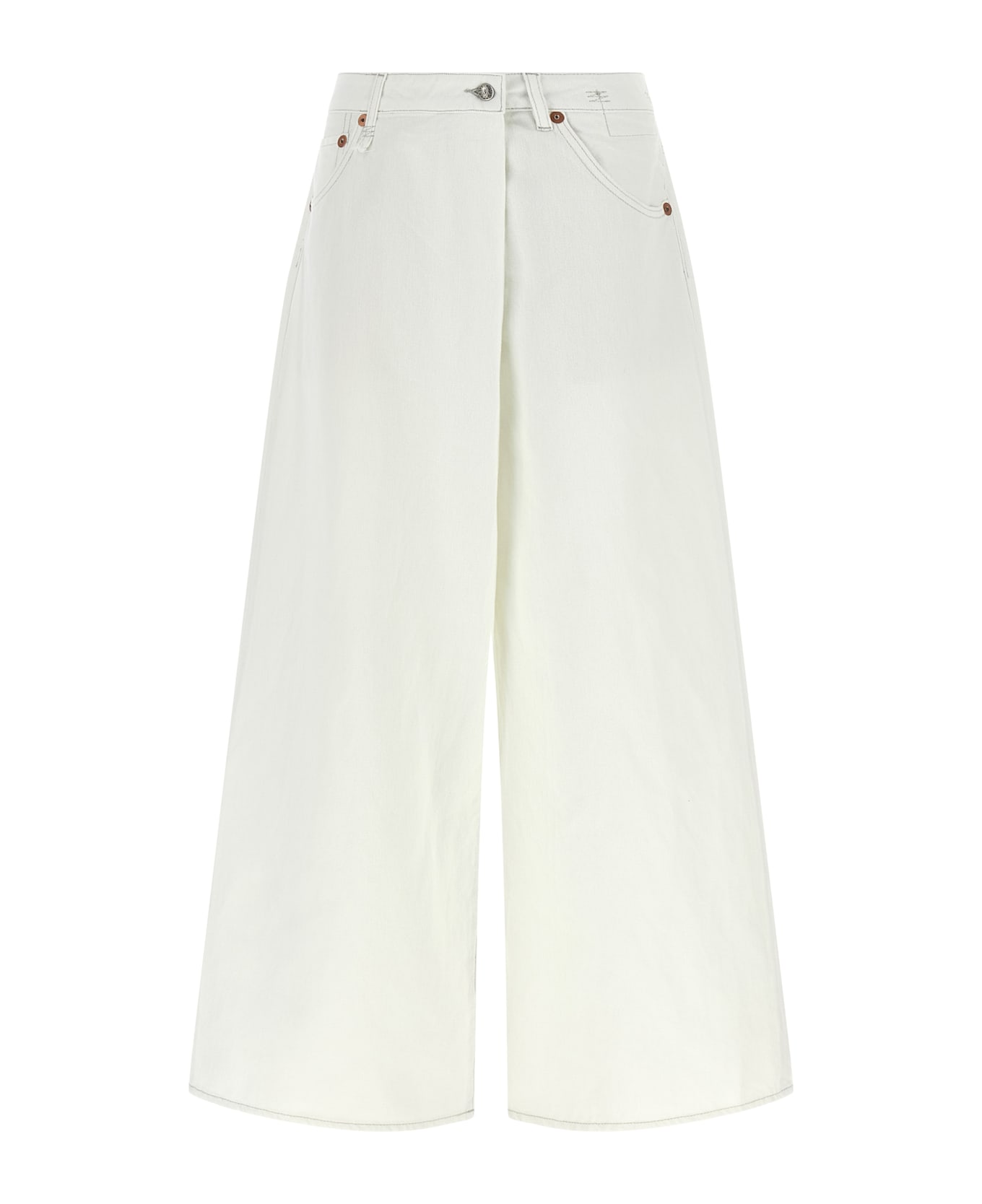 'Nico Wrap' jeans in garment-dyed cotton denim with contrast stitching, extra wide leg, asymmetric wallet closure with buttons, low crotch, five pockets, back logo tag.