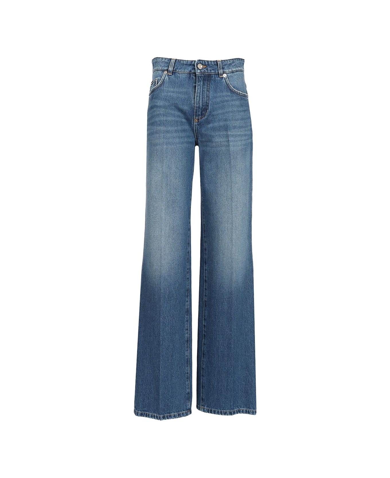 Regular fit jeans from Dolce & Gabbana made of light blue cotton denim, with straight leg cut, medium waist, metal plate with engraved logo sewn on the back pocket. Composition: 100% Cotton
