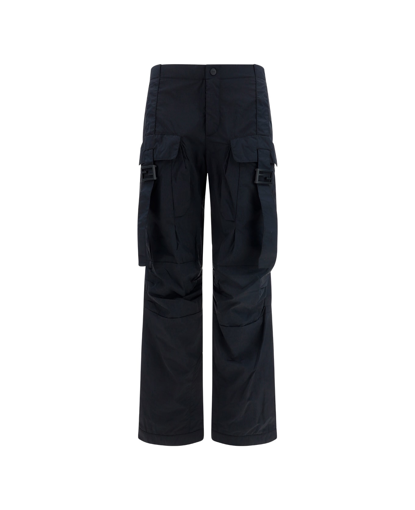 Cargo pants by fendi , front button and hidden zipper closure, two large pockets on the front, two embroidered sashes on the front, two metal buckles with iconic ff baguette brand logo, details all-crumpled effectover, two patch pockets on the back.