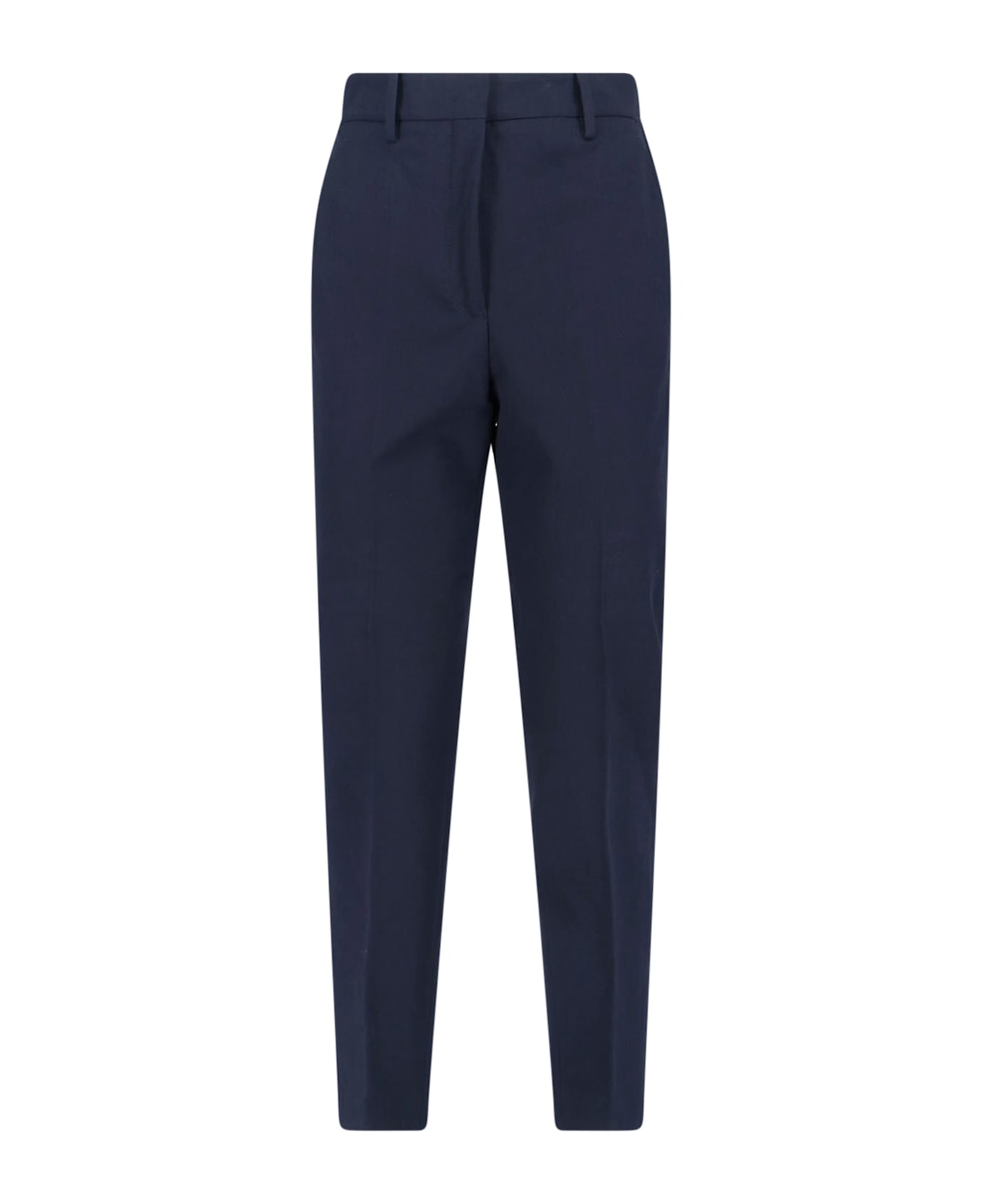 Incotex cotton pants, blue, navy shade, mid-rise, belt loops, hook and zip closure, two side pockets, two back pockets, straight leg. Composition: 95% Cotton, 5% Elastane