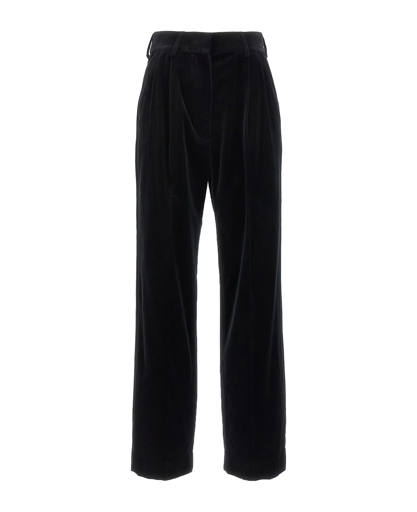'Jealousy' smooth velvet pants, high waist, straight leg, pince, stretched crease, pockets, zip hook and front button closure, back 'Smiley' pocket. Composition: 100% cotton