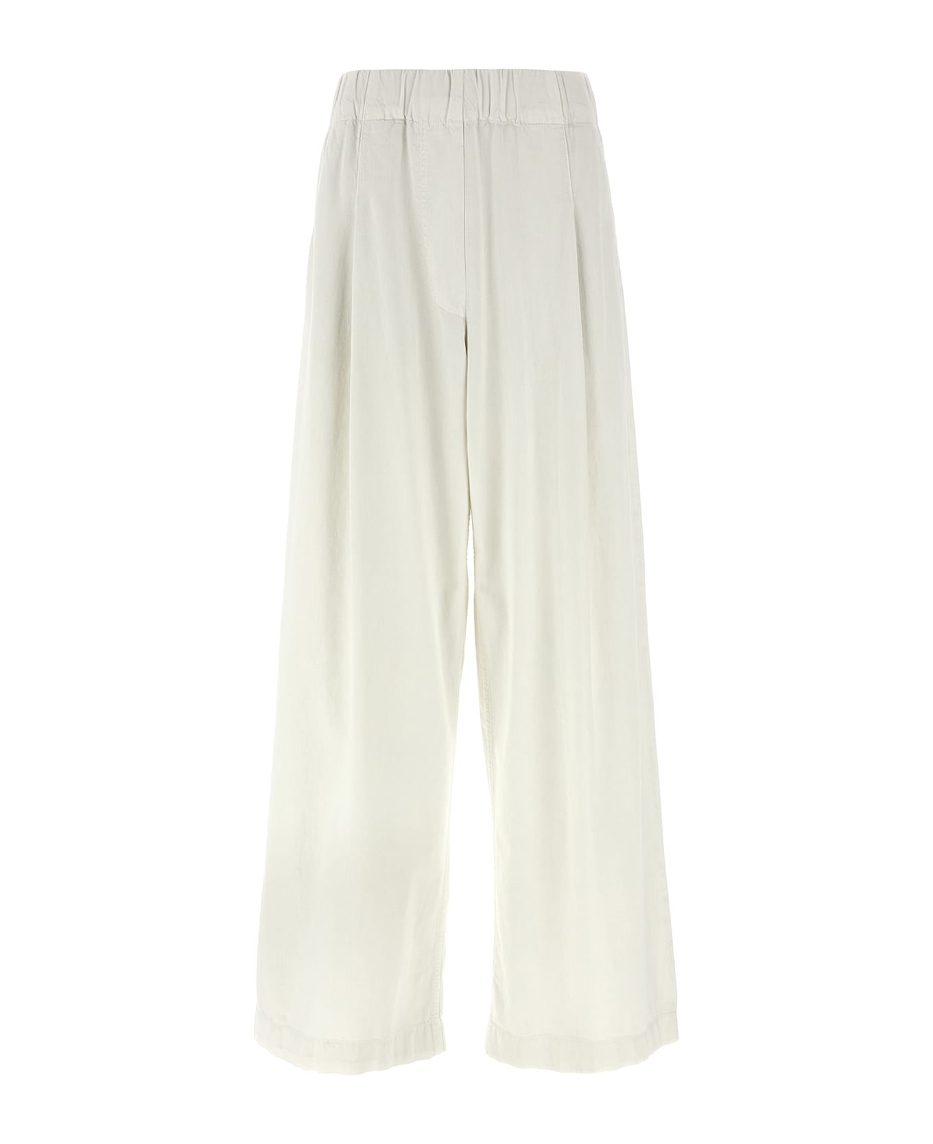 'Pila' cotton denim pants, loose leg, elastic waistband with drawstring, pleats, pockets.