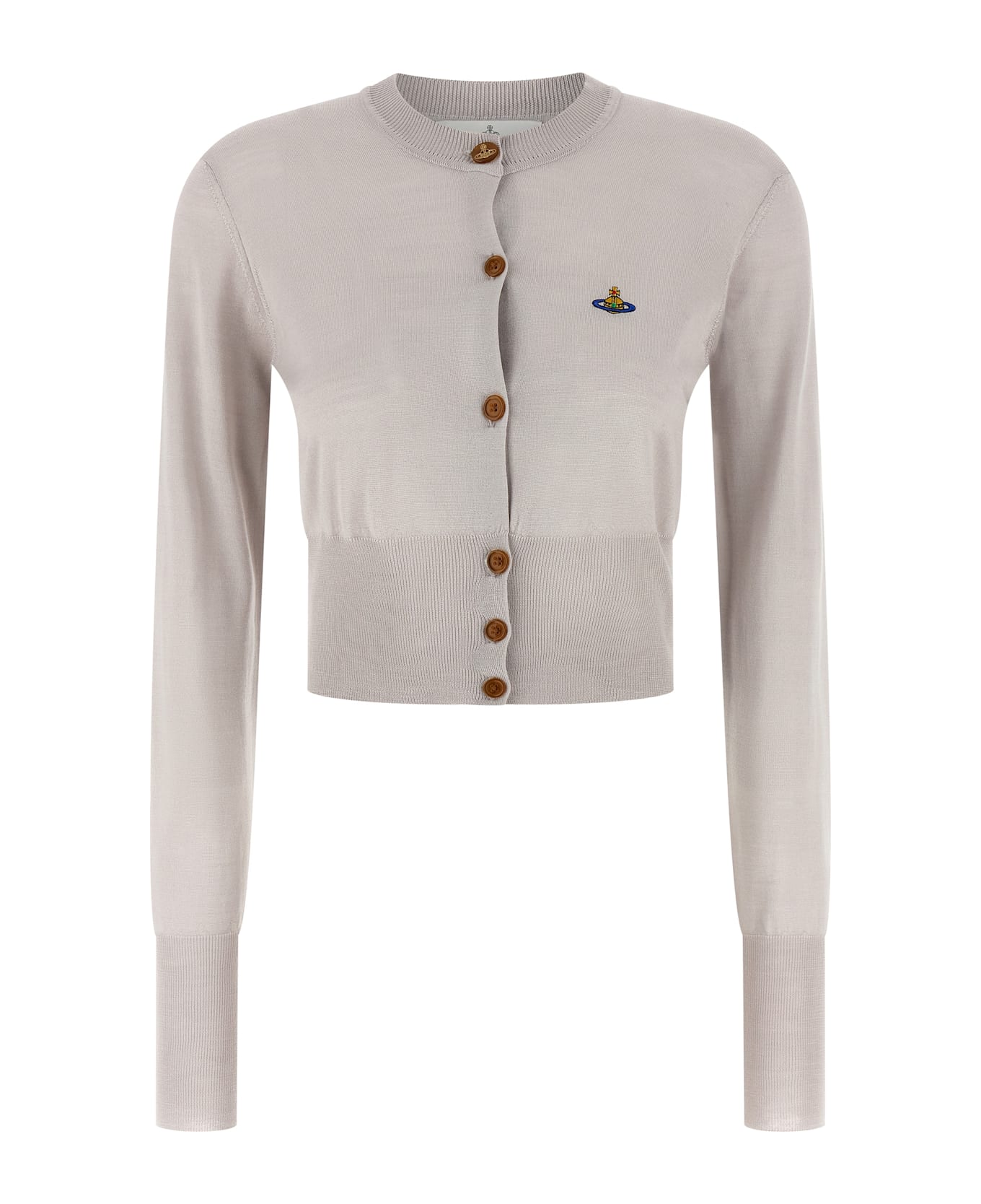 'Bea' cropped wool and silk cardigan with Orb logo embroidery and front button closure, round neckline, long cuffed sleeves. Composition: 70% wool, 30% silk