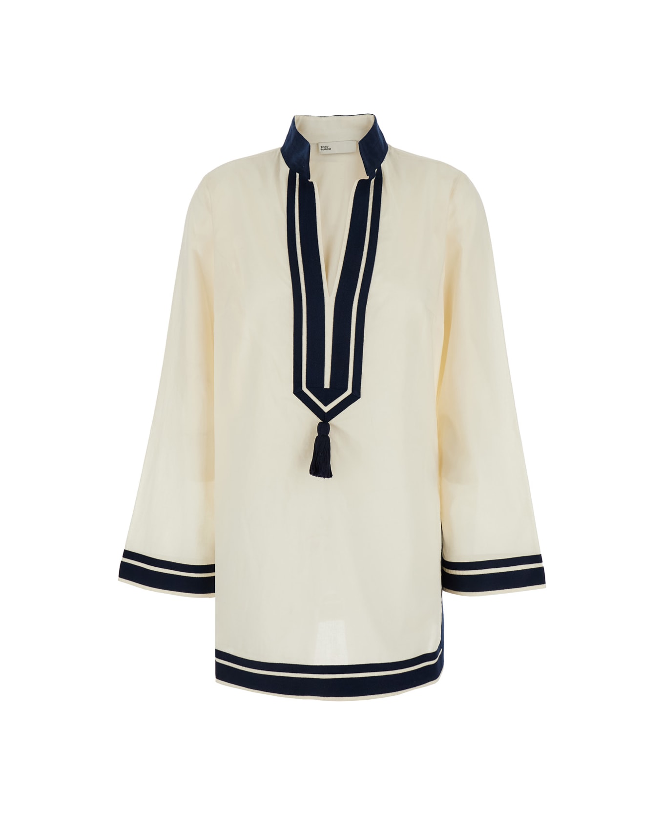 White Caftan With Contrasting Details And Tassel In Cotton Woman