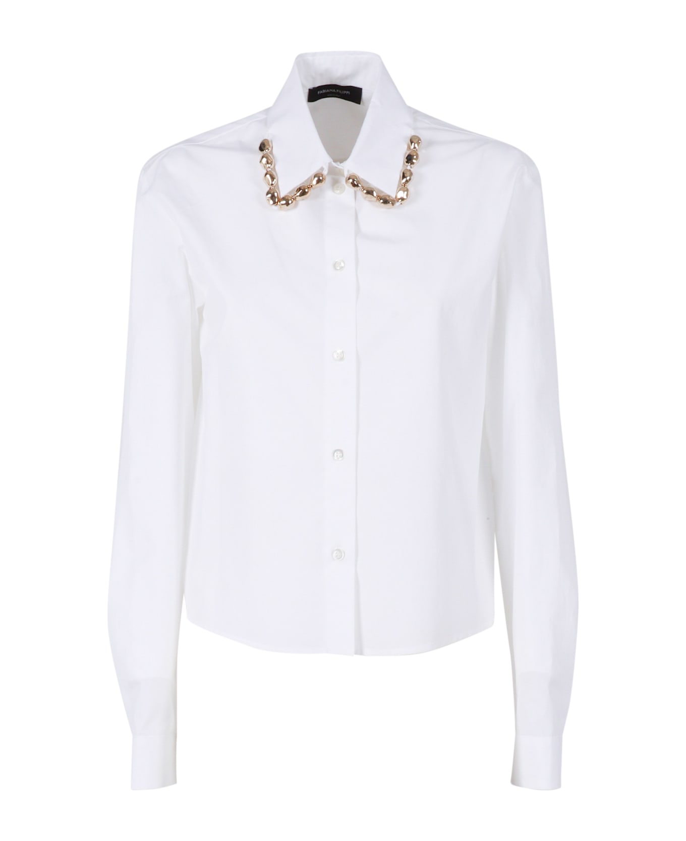 Poplin Cropped Shirt With Pepita Embroidery On Collar